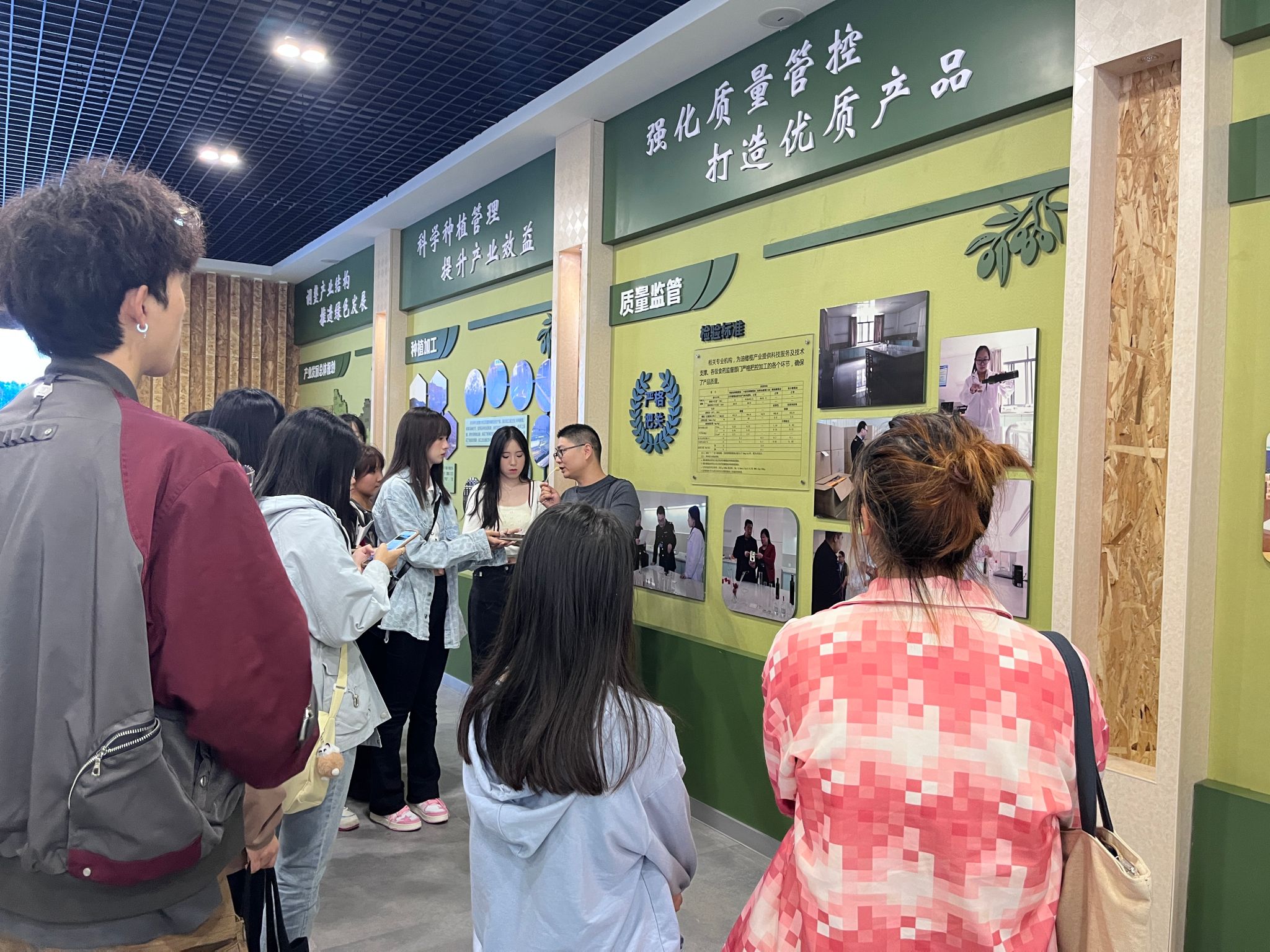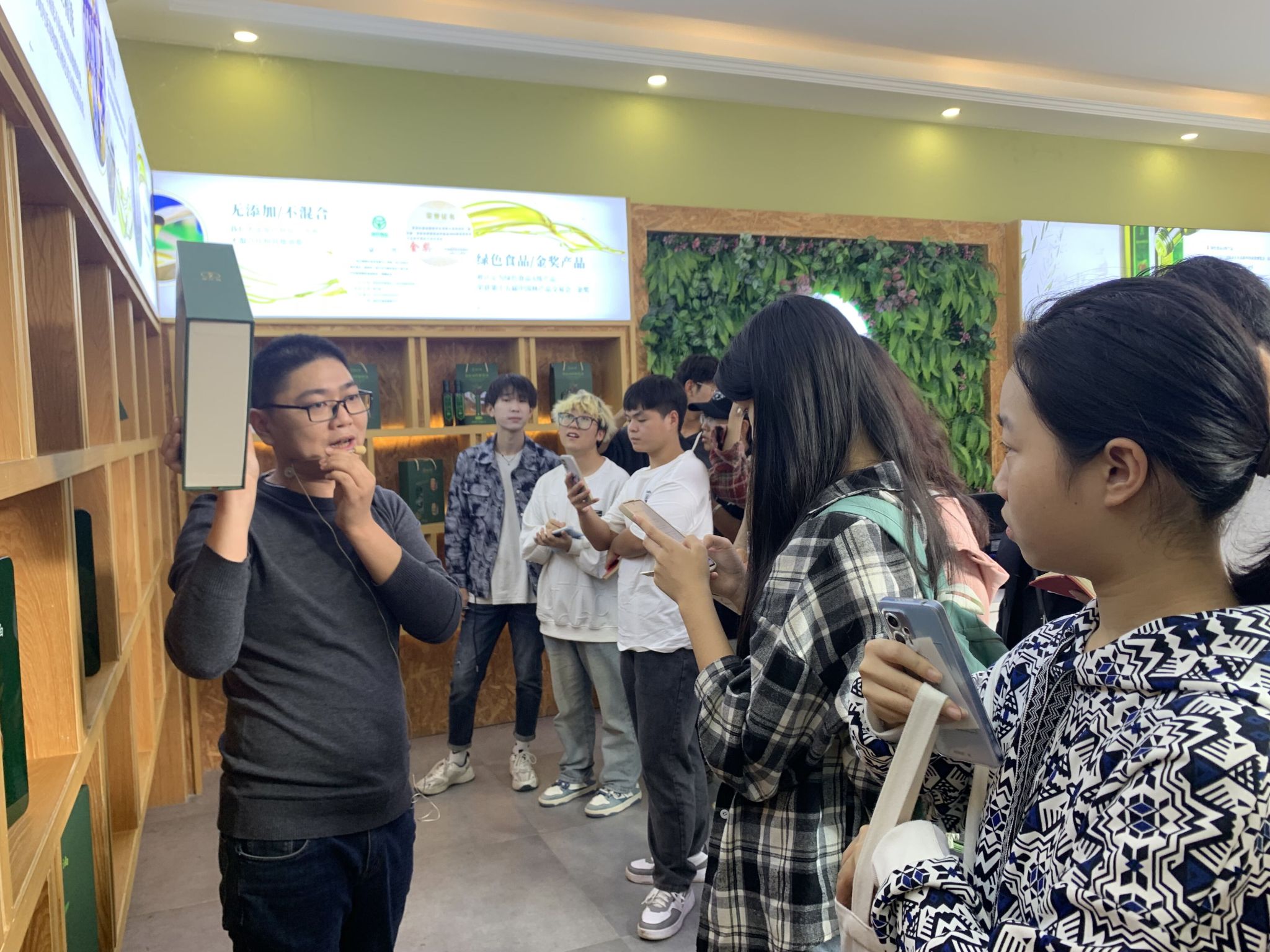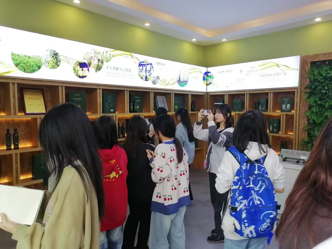 接着,安总带领师生分批参观了该公司橄榄油品牌文化馆,在这里安总向大家介绍了渝江源橄榄油类型和营养价值,按照果实成熟度区分为:80%、90%和100%三种类型,每种类型营养价值极高,都有助于肠道消化和降血压。“让中国人喝上自己的油”,这是渝江源橄榄油品牌对于国人的号召。公司不断加强自身技术进步,多次参与橄榄油技术研讨会、接待各国橄榄油技术人员到种植基地和公司进行技术指导。在产品研发方面,公司致力于创新,产品涉及众多领域:橄榄菜、橄榄茶、橄榄香皂、橄榄胶囊等,采用线上与线下融合的方式拓宽宣传和知名度,致力于打造销售新路径,开拓宣传销售新思路。
