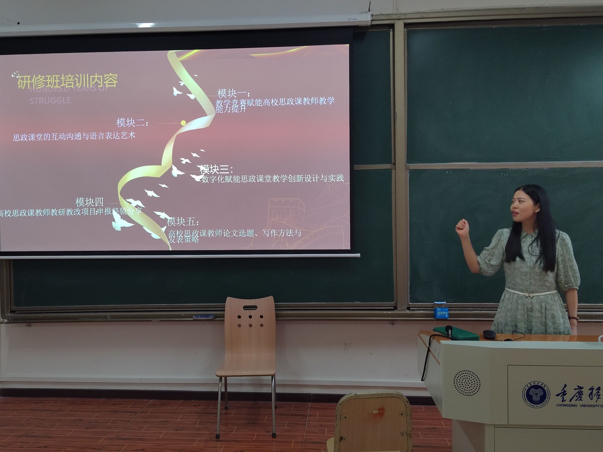 为深入学习贯彻习近平总书记关于教育的重要论述,认真落实2024年全国教育工作会议精神,激发教师发展创新潜质,提升教学和科研综合能力,9月25日下午三点半7208教室,唐菊相老师做“弘扬爱国主义精神 强化使命担当”——2024年高校思政课教师综合能力提升研修班(昆明)培训分享,《中国近现代史纲要》教学团队负责人靳银霞老师主持,团队全体成员参加。