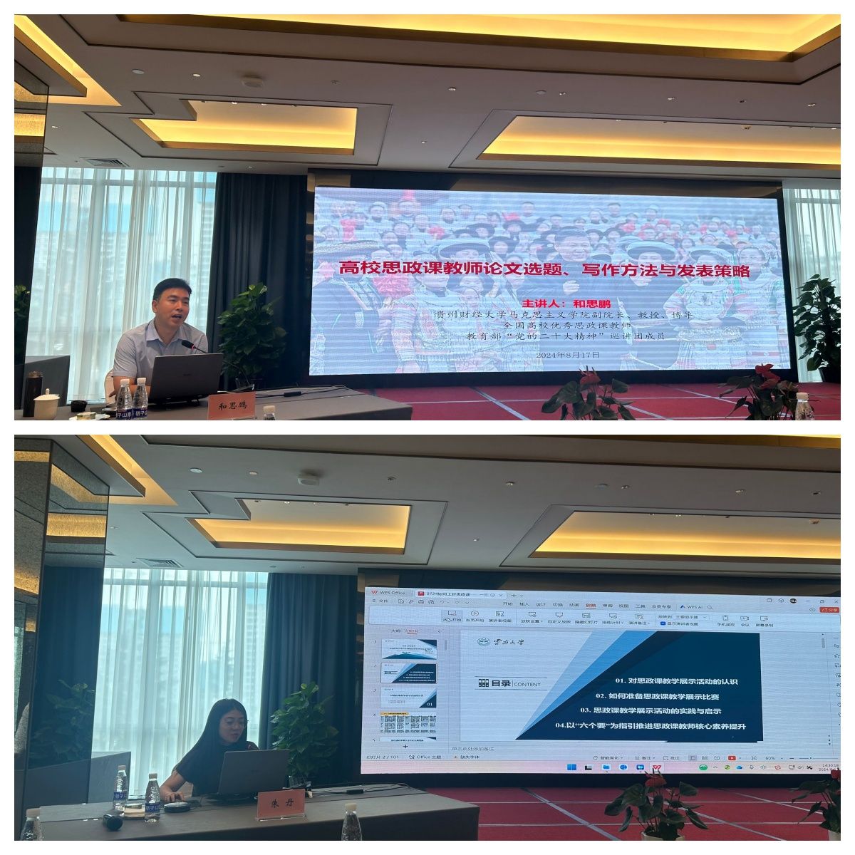 首先,唐老师为团队老师分享了此次培训的理论学习内容。唐老师讲到:来自贵州财经大学马克思主义学院副院长和思鹏教授以“高校思政课教师论文选题、写作方法与发表策略”为主题,分别从教育科研成果凝练、教育科研论文写作方法和技巧与策略、期刊选题标准、投稿技巧及注意事项等方面为广大教师论文发表提出了一些宝贵意见和建议;来自云南大学马克思主义学院副院长朱丹副教授以“助力高校思政课教师发展”为主题,结合自身发展路径,详细梳理了高校思政课专业教师的特征,针对广大高校思政课教师在教学科研中遇到的痛点难点问题、论文写作发表的困境等方面提供了宝贵经验和启示。