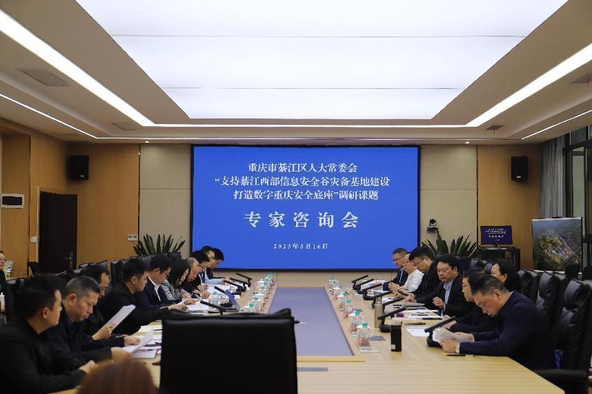 为大力推进綦江西部信息安全谷建设,推动綦江展业转型升级,为綦江在成渝地区双城经济圈建设的全域中谋一域发展,3月16日上午,在我校綦江校区召开了重庆市綦江区人大常委会关于“支持綦江西部信息安全谷灾备基地建设 打造数字重庆安全底座”调研课题专家咨询会。区人大常委会主任母明江,区人大常委会副主任褚洪春、陈勇,特邀专家北京邮电大学辛阳教授,电子科技大学蒋迪教授,重庆大学陈其安教授,中共重庆市委党校教授戴志颖教授,各相关部门及单位负责人,调研课题组成员参加会议。