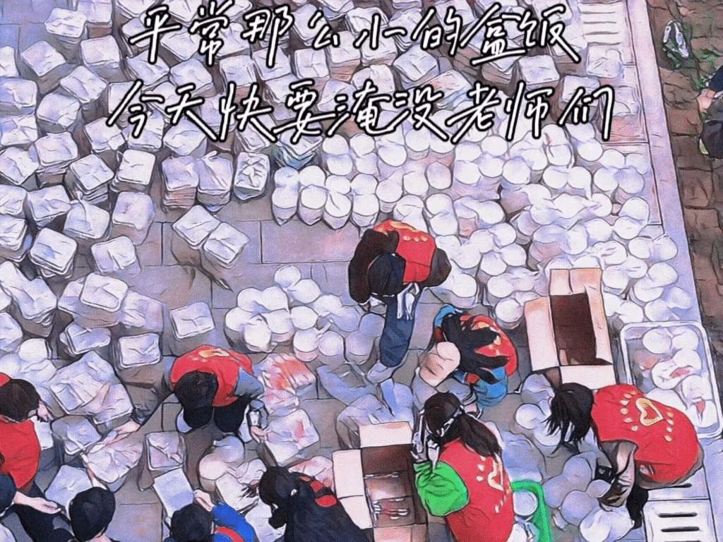 志愿老师们还没坐下歇口气,又继续为同学们准备午饭,没吃上一口饭却坚定地呐喊着“优先保障学生”、“不能把孩子饿着了,老师年纪大,多一顿少一顿没的意见”……学生们也知道老师们的辛苦,不仅未抱怨过很晚才拿到餐饭,还积极主动申请加入志愿者大队,也会在阳台悄悄记录下最美志愿的背影。同时在各大网络平台上传图片视频感谢老师,为老师加油打气!积极传播正能量,配合学校抗疫工作,传播了良好的校园抗疫精神。