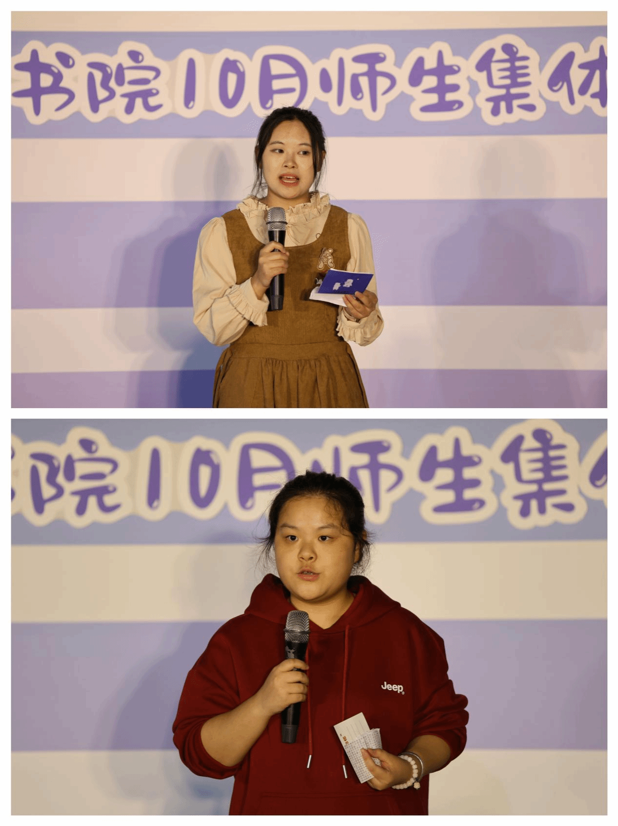 成长在一步步的脚印中镌刻成碑,时光的魅力余香也从不会戛然而止。在寿星代表发言环节,来自信息安全学院观云书院的王琳与来自大数据学院横山书院的蔡宏艳同学分别就参与、组织生日会的感受进行了分享,真挚的言辞带我们回顾这过往的点滴,传递的喜悦印证着书院时光的温暖,浓厚的情谊弥漫至对未来的期盼。