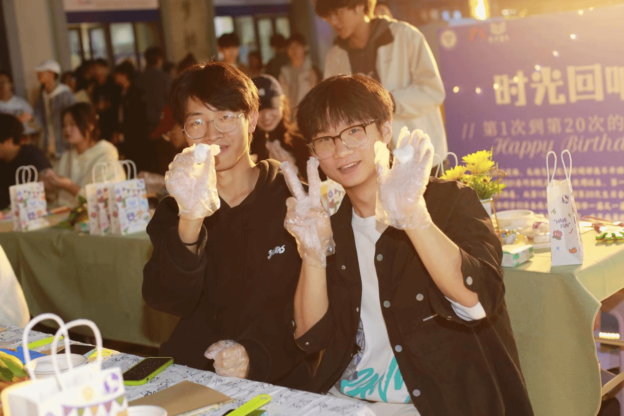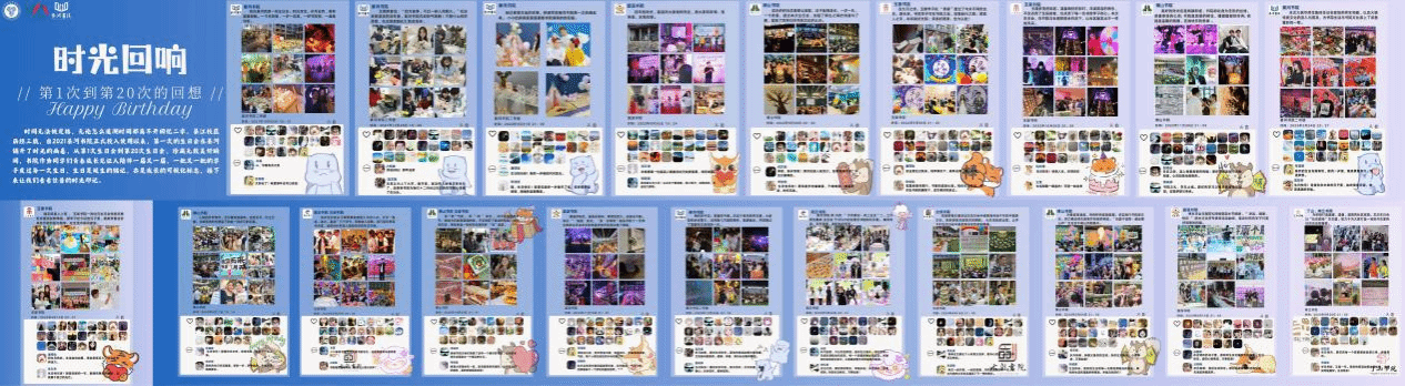 光是梦,编织回忆的长廊,时光是路,连接前行的方向。在工作人员的指引下,寿星们走过回忆的花路,写下此刻的心愿,签下自己的姓名,望向过往的印记,同学们在踏入生日会场的那刻仿佛就落入了时光的长廊,从第1次到第20次是书院陪伴我们走过的历程,亦是同学们成长的痕迹。