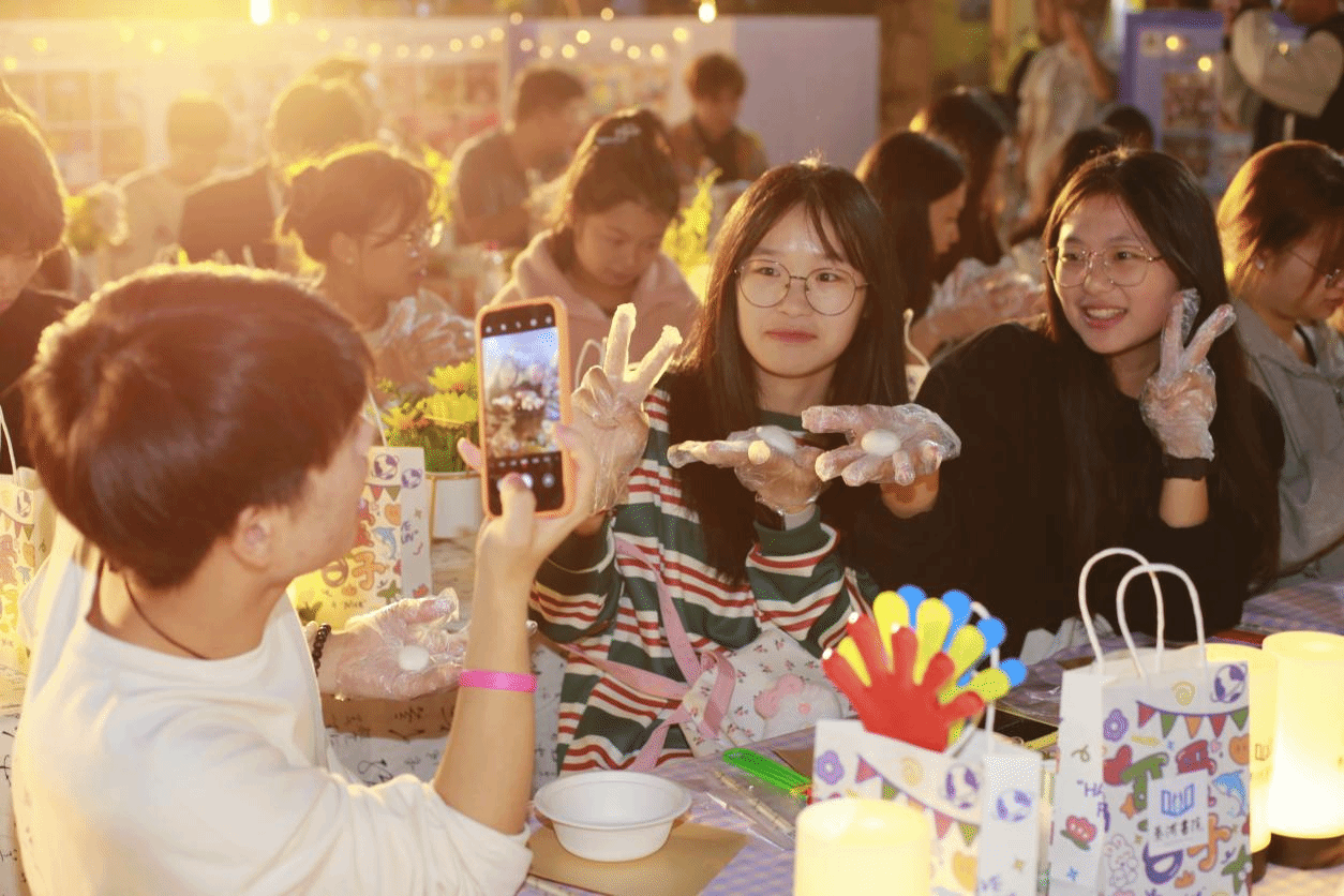 同微光诉说着团圆的情谊,与朋辈传递着美好的祝福,大家在欢声笑语中共同制作着手中的小汤圆,似是要将愿望融入手中的糯米面团化为一抹香甜的期盼。随着来自校流行声乐团崔逸博、杨晨、胡晓龙三位同学,分别用《麻雀》、《不潮不用花钱》、《彩色的黑》三首歌将现场氛围推向高潮,动听的音乐点亮了夜幕的黑暗,青春活力的气息铺面而来,精彩的演出不仅吸引了观众的目光,更让大家在繁忙的学习生活中暂时放松身心。