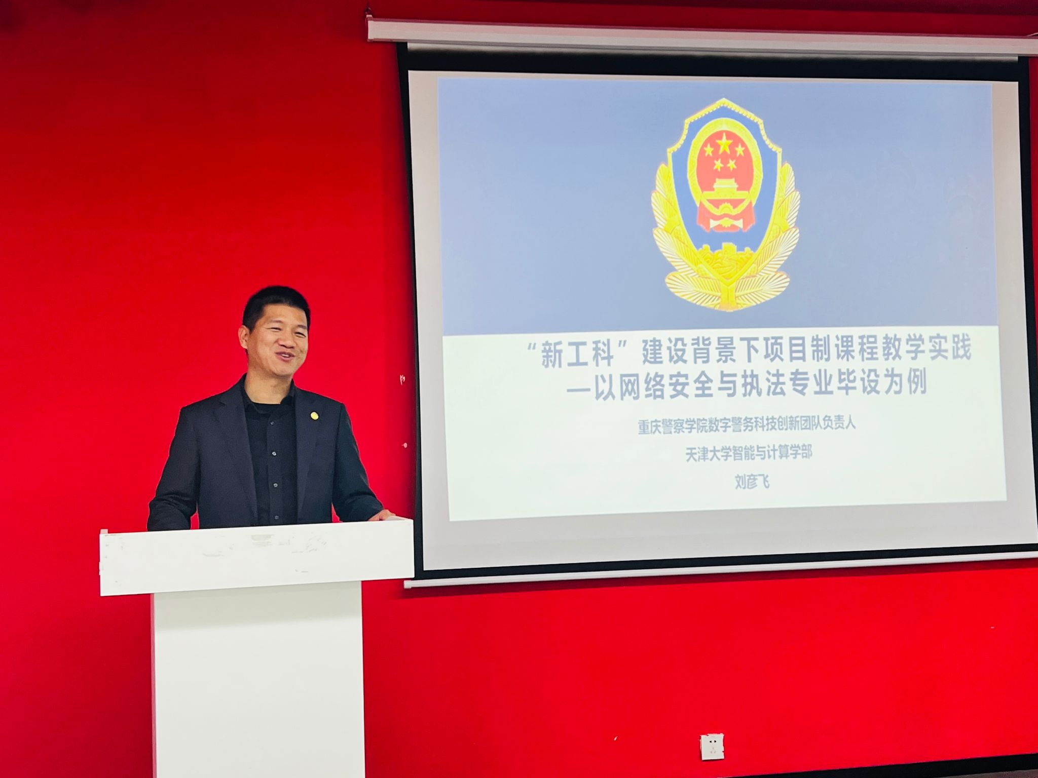 2025年3月20日下午,计算机学院全体教师齐聚玉棠书院TalkKing演讲中心,共同聆听了一场主题为《“新工科”建设背景下项目制课程教学实践》的精彩讲座。此次讲座由计算机学院副院长林泽金主持,计算机学院特别邀请重庆警察学院正高级教官、数字警务科技创新团队负责人、重庆理工大学校外硕士研究生导师刘彦飞担任主讲人。