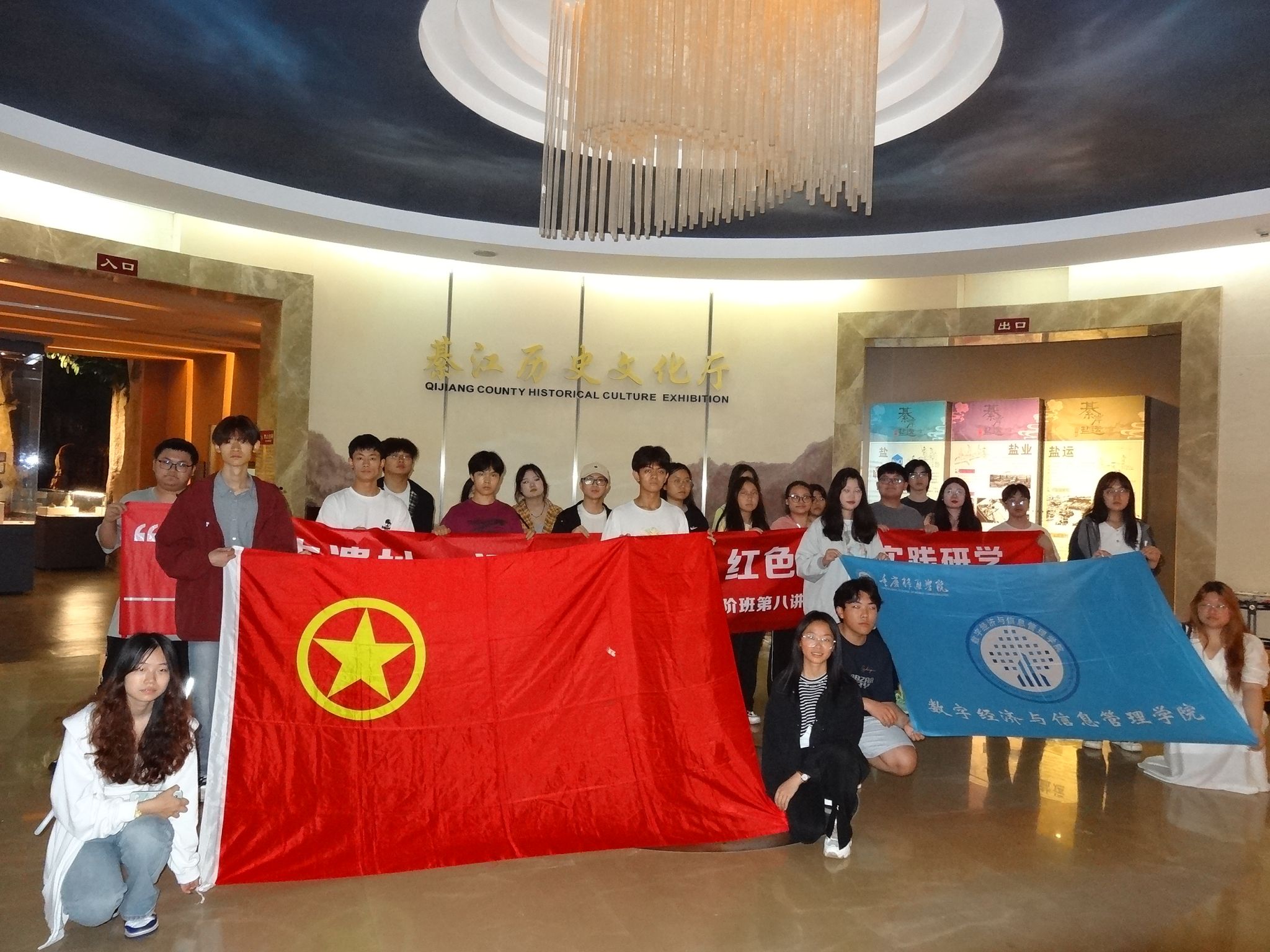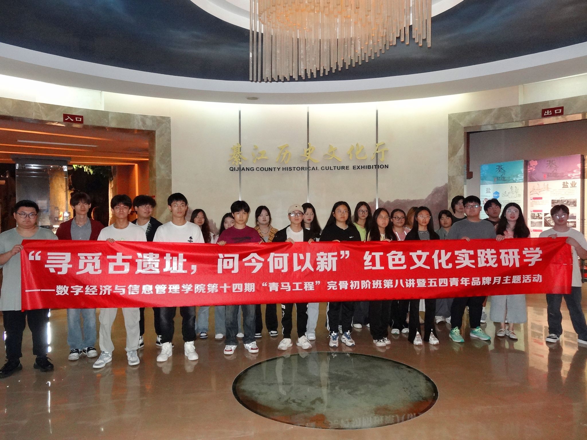 历史文化遗产,犹如岁月的瑰宝,镶嵌在人类文明的璀璨星河之中。它们不仅是往昔的记忆,更是未来的纽带,承载着世世代代的智慧与深情。然而,在当今社会,众多青年人却漠视其重要意义,肆意对红色文化遗产造成无可挽回之损失。有鉴于此,数字经济与信息管理学院于2024年5月11日中午14:00在綦江博物馆举办了我院第十四期“青马工程”完骨初阶班《青马第八讲》暨“寻觅古遗址,问今何以新”綦江博物馆红色文化实践研学活动。