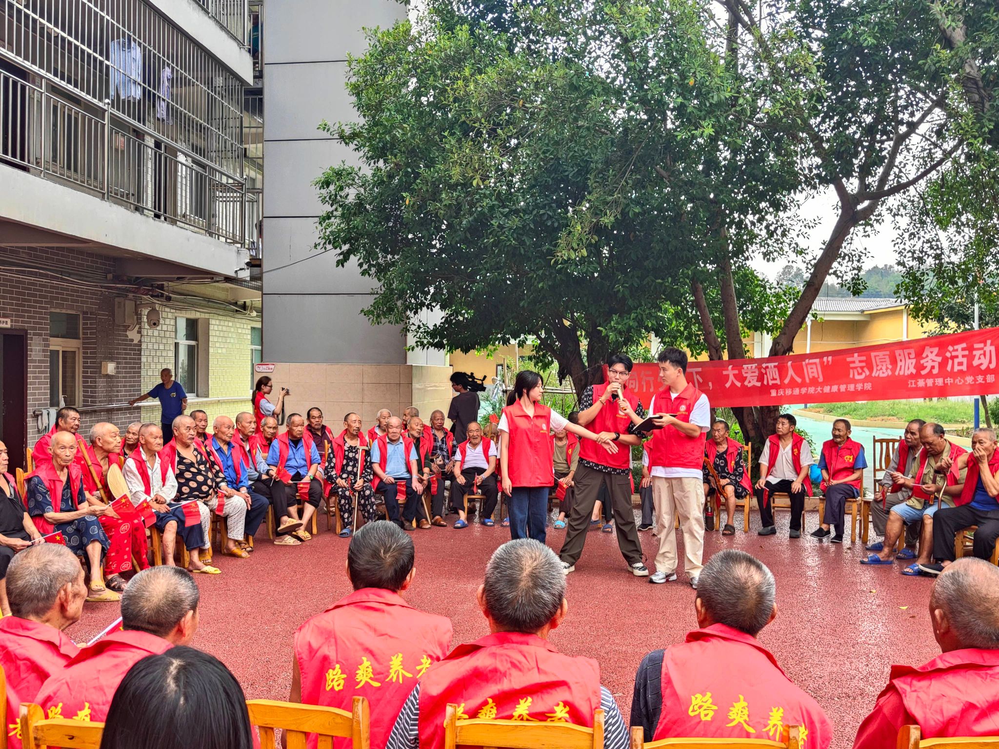 秋风送爽,金桂飘香,随着国庆佳节的临近,社会处处洋溢着喜庆与温馨的氛围。在这样一个充满温情与感恩的时刻,江綦管理中心党支部与重庆移通学院大健康管理学院的师生们于9月23日携手走进永新镇养老院,开展了一场以“同行夕阳下,大爱洒人间”为主题的志愿服务活动,为老人们送去了秋日里的温暖与关怀。
