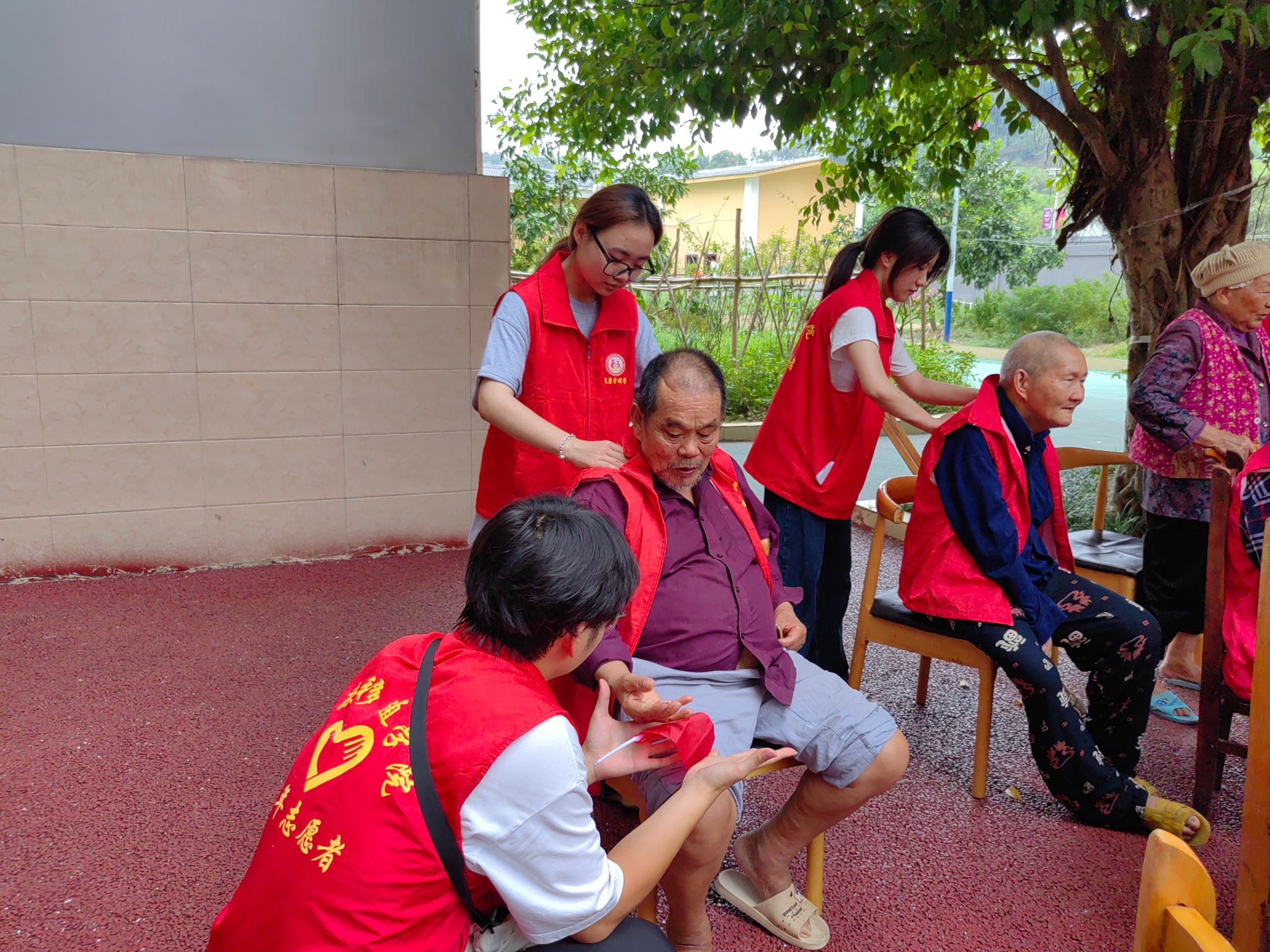 除了精彩的文艺表演,志愿者们还根据大健康管理学院“养老服务与管理”及“健康服务与管理”的专业特色,为老人们讲解实用的养老知识。他们耐心细致地解答老人们关于健康的每一个疑问,用专业知识为老人们的晚年生活保驾护航。在温馨的氛围中,志愿者们分组为老人们进行推拿按摩,他们手法娴熟,进行细致入微的按摩护理,缓解老人们的身体疲劳与不适,带给他们身心的放松与舒适。