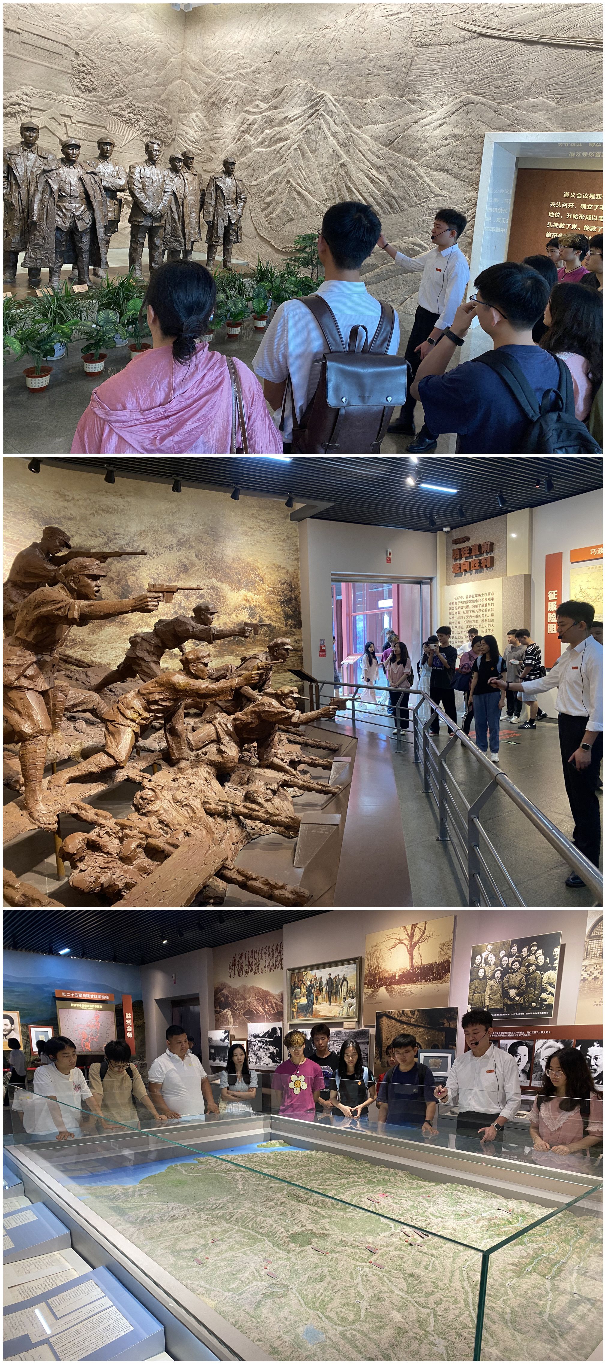 讲解员还为现场师生详细讲解了习近平总书记关于遵义会议的重要论述和指示精神,研学团成员深刻领会遵义会议历史经验、时代价值。在陈列馆,大家通过聆听讲解员的解说,并结合珍贵的图片资料、陈列文物、文字说明等,细细重温那段波澜壮阔的峥嵘岁月,深入了解红军在曲折中不断前进的奋斗历程,真切感受长征路上的苦难与辉煌。