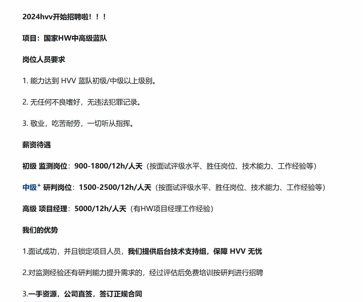 以下是某某厂商护网招聘信息
