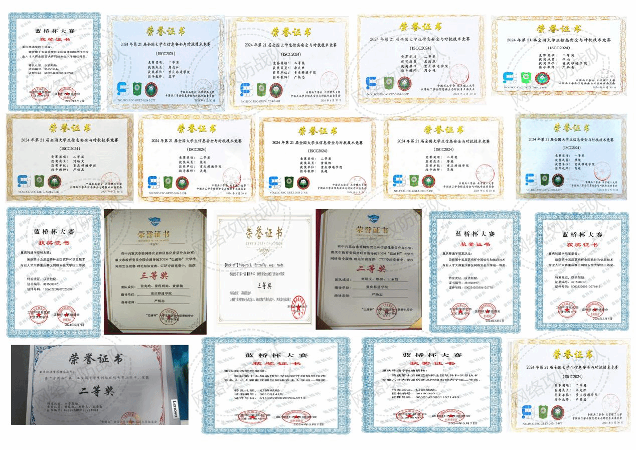 2024年教育攻防演练(国家级护网)中我校作为西南赛区(西南赛区参演高校:西南大学,重庆警察学院,重庆邮电大学,重庆电子科技职业大学等)红队参加本次演练,由各省省教育厅和北京高校诸如:清华大学,北京大学,北京理工等等高校作为蓝队参演,在演练中我校成绩在西南赛区名列前茅