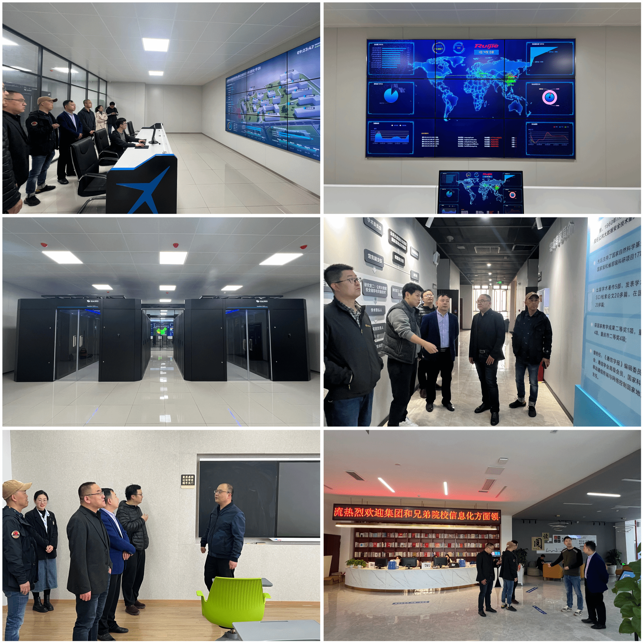 三校信息化团队于3月29日在重庆移通学院(綦江校区)交流,参观了綦江校区智慧校园校情驾驶舱、智慧教室、公共大数据实验室、图书馆等,就綦江校区网络安全建设、智慧教室建设、轻应用开发、校情驾驶舱数据大屏建设及一期二期新校区信息化建设工作等方面进行了深度探讨交流,互相借鉴、取长补短。3月31日三校信息化团队来到重庆移通学院(合川校区),针对合川校区本年度IDC数据中心机房建设项目进行了现场勘查及讨论,对项目中涉及到的空间规划设计以及基础承重等重点难点问题,提出了很多中肯的建议。