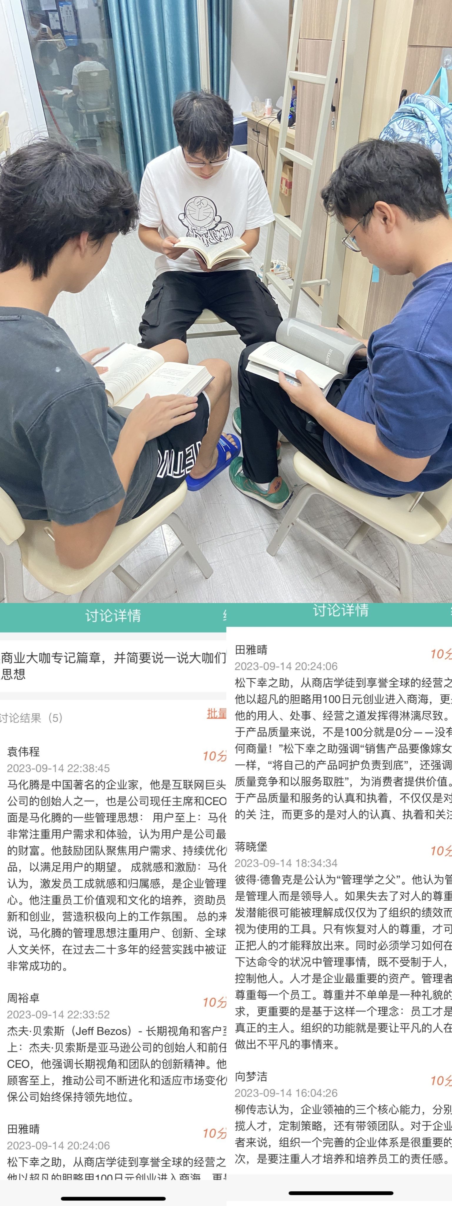 张红老师与她所带的管理学班级同学一起,依托商业大咖专记阅读活动,围绕管理学课程学习内容,以大咖们的管理思想为主题,通过线下阅读与线上讨论互动的方式,实现了课程与商业大咖专记的高度融合。