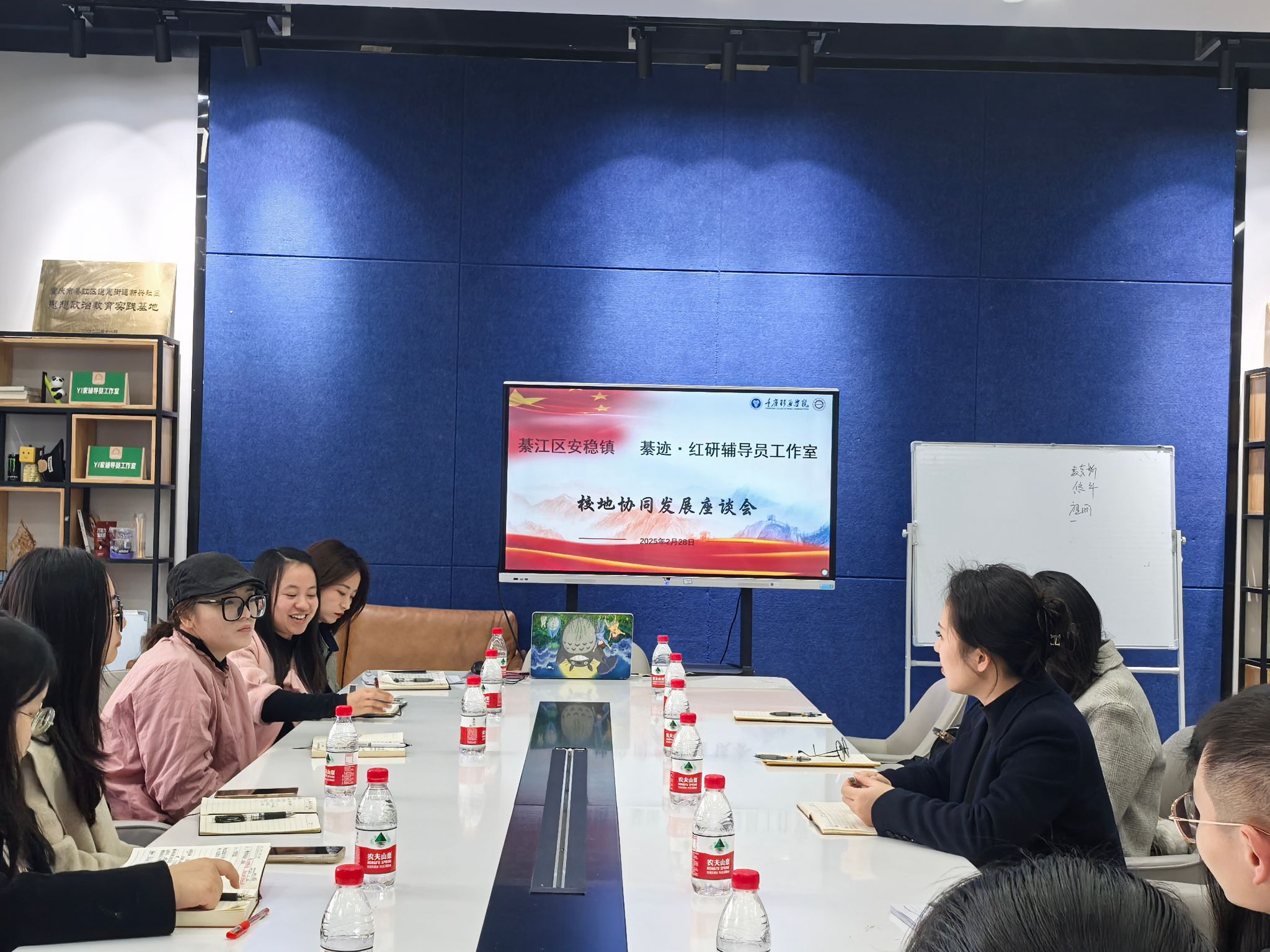 为进一步推动红色文化传承与创新,深化校地合作,2月28日,綦江区安稳镇党委宣传统战委员许老师一行到访重庆移通学院綦迹·红研辅导员工作室,双方围绕红色文化项目共建开展座谈交流,就品牌打造、实践基地建设、课程研发等议题展开深入探讨。
