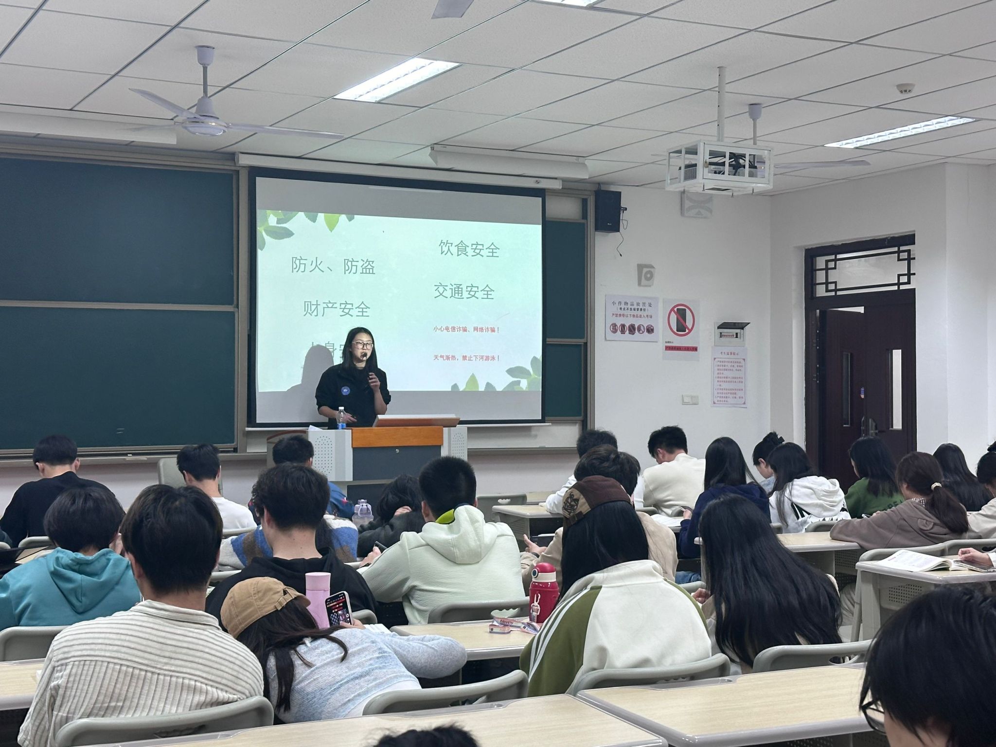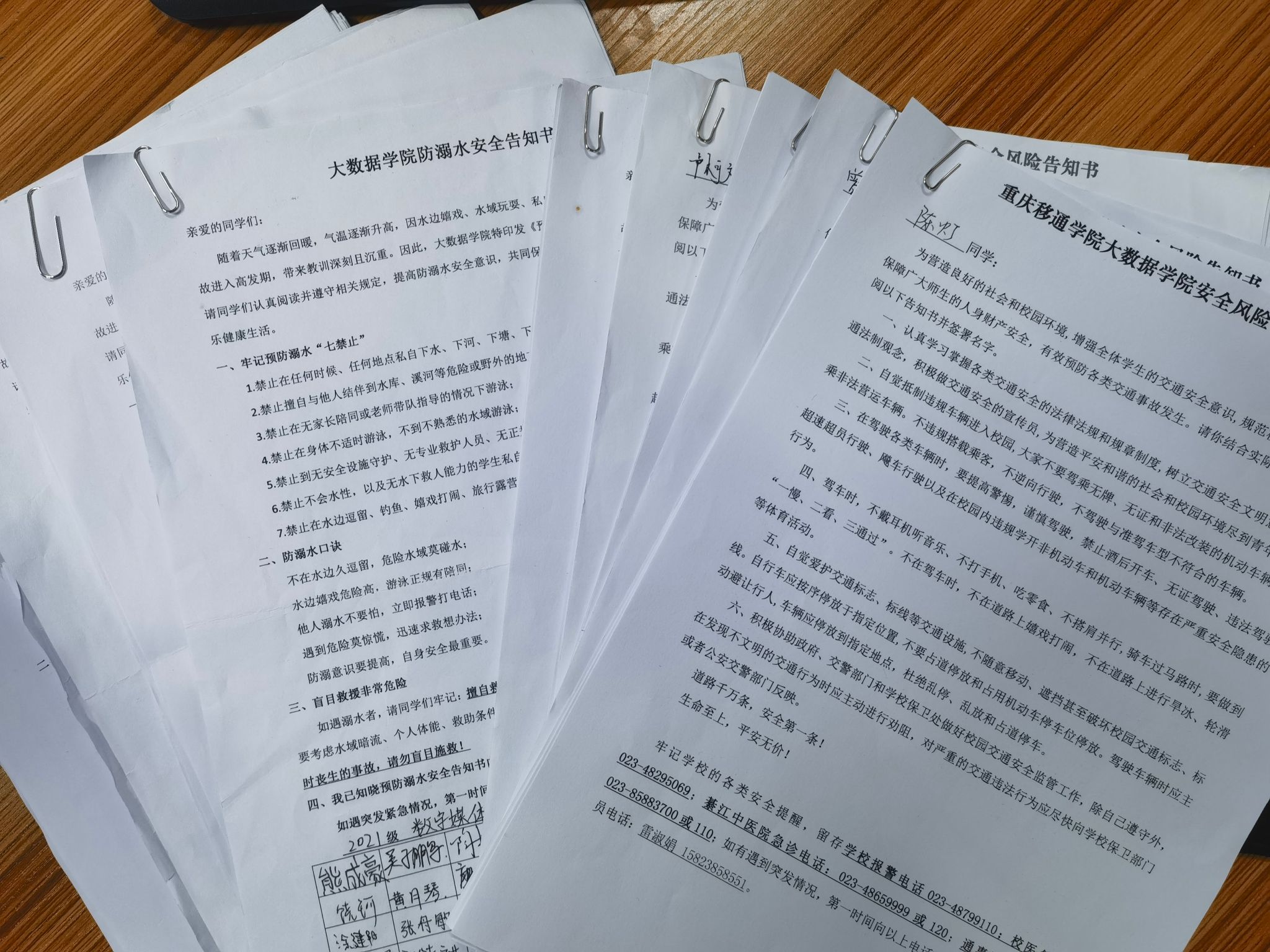 结合劳动假期的实际情况,老师们还开展了防溺水安全教育,强调要将个人生命安全放在第一位,特别提醒各位同学天气转热不私自下河游泳,并讲解了防溺水的“七禁止”和救援的措施,不要盲目救援,此外,大数据学院全体同学都在4月底前,完成了《大数据学院防溺水安全告知书》的阅读并签署工作,进一步增强了同学们的安全意识。
