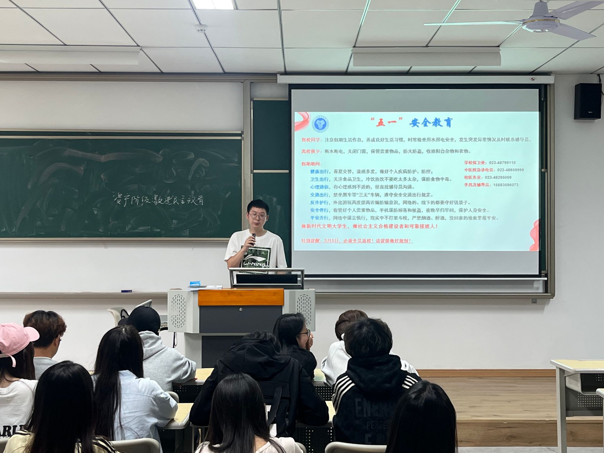 在老师们的安全教育会上,老师们针对劳动节的各项内容进行了详细宣传教育。在交通出行安全方面,辅导员们强调,回家、外出时要遵守交通法律法规,尽量选择乘坐公共交通,不要租赁汽车、电动车和自行车出行,或乘坐无营运资质的车辆出行。此外,老师们温馨提示要关注假期突发天气的变化,做好行程规划和风险防范,注意季节性流行性疾病的预防,时刻注意人身安全和财产安全,度过平安快乐的祥和假期。