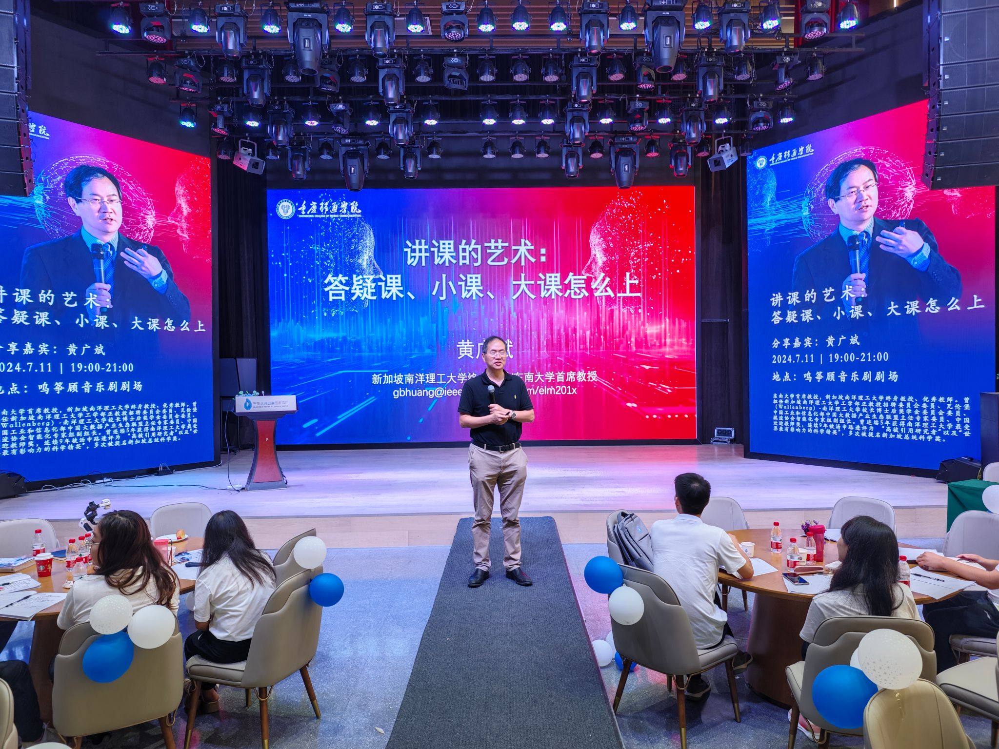 7月11日晚上,黄广斌教授为参培教师带来了《讲课的艺术:答疑课、小课、大课怎么上》的主题讲座,黄广斌教授结合《数据结构》课程的实际讲授,生动地演示了如何有效地进行答疑课、小课和大课的教学。在答疑课环节,黄教授指出教师需要营造平等轻松的气氛,演示了如何有效引导学生思考和解决问题以达到开阔视野、茅塞顿开的效果;对于小课,他分享了如何在有限的时间内聚焦核心知识点,提高教学效率。在大课部分,黄教授强调了通过丰富教学方法,调动学生的参与度。讲座的最后,黄广斌教授与现场教师进行了深入的交流互动,回答了教师们提出的各类教学问题,并鼓励他们不断尝试和创新,以进一步提升教学效果。教育不仅是知识的传递,更是艺术的展现。此次黄广斌教授的讲座不仅展现了他深厚的教学功底,更为在场的教师们提供了一次思考和学习的机会,使他们能够在未来的教学过程中更好地传授知识,激发学生的学习热情。