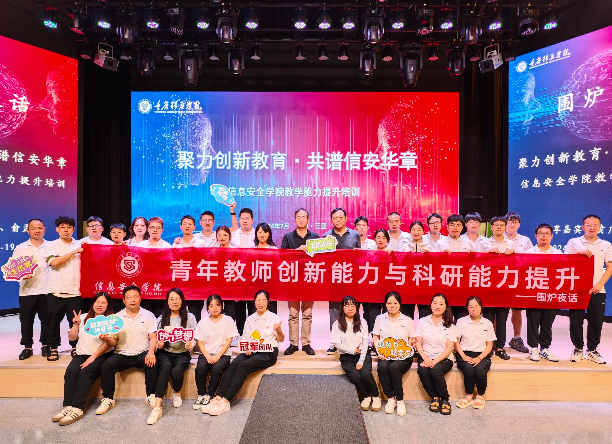 为提升我校教师教学能力,促进内涵建设与质量提升,建设高水平创新型教师队伍。2024年7月10日至14日,重庆移通学院信息安全学院骨干教师齐聚海南三亚天涯蓝海度假酒店,参加了“人工智能前沿技术与教学创新融合之道”主题培训。此次海岛研学培训特邀东南大学首席教授、新加坡南洋理工大学终身教授、优秀教师黄广斌,江苏科技大学俞孟蕻教授莅临指导。培训活动分为“同心同行•共建未来”“专家引领•学术探讨”“围炉论道•教学相长”“智慧碰撞•共创未来”等环节,旨在通过深入探讨人工智能领域的最新发展,激发教师对教学内容和方法的创新思考,实现理论与实践的同步提升,切实提高信息安全学院教师团队的教育教学水平,共同推动学校专业教育的卓越发展。