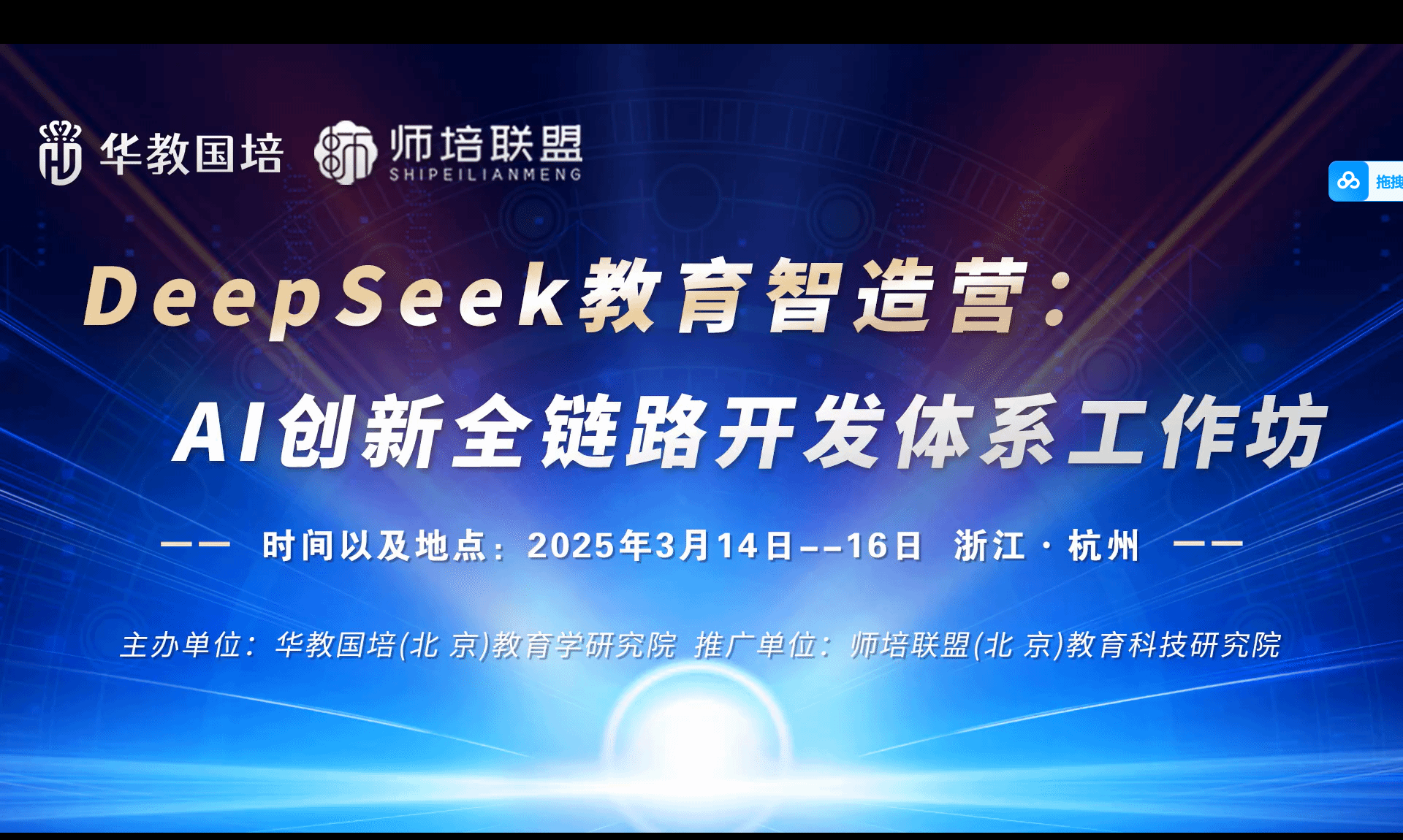 为深化人工智能与教育教学融合,提升教师智能教育素养,重庆移通学院数字媒体产业学院鲜萱老师于3月15日至16日参加了由师培联盟主办的"DeepSeek教育智造营:AI创新全链路开发体系工作坊"线上培训。此次培训聚焦AI教育应用场景,通过四大专题模块的系统学习,为参训教师构建了完整的AI教学创新知识体系。