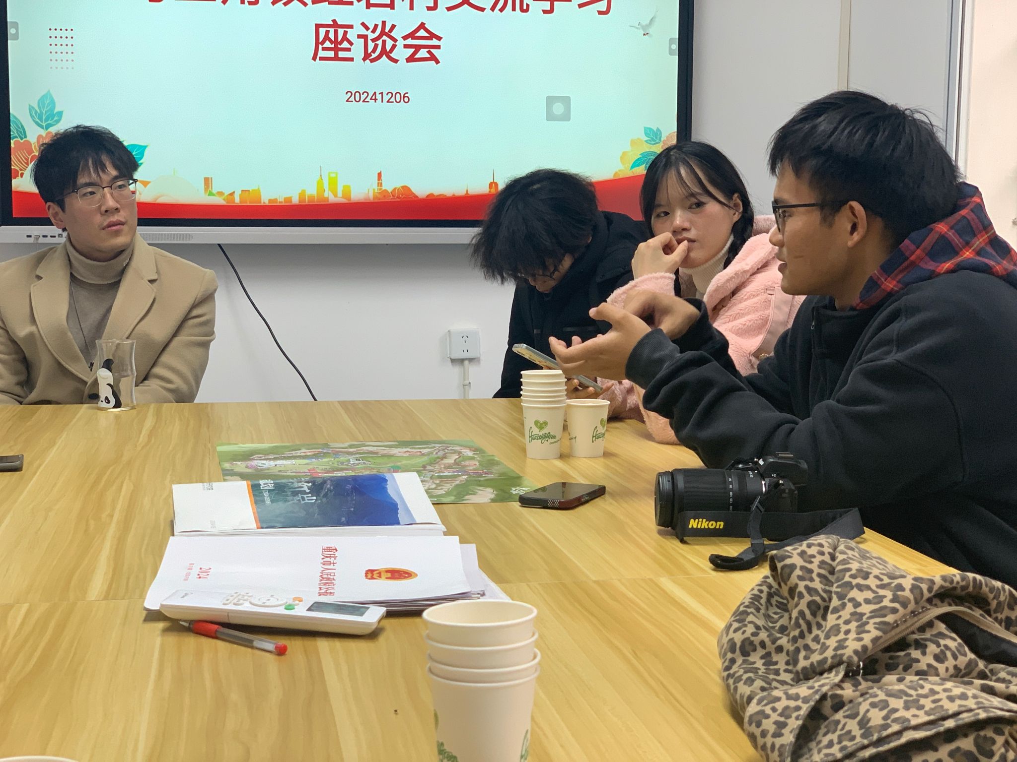 2024年12月6日下午14:00,第二期数字乡村实训班的学员们如约而至红岩村,迎来了实训班第七次的教学活动。天气越发寒冷,但前往红岩村怀揣的学习的心却是炽热滚烫的。今天,有一位工作经验丰富的老师在张书记的推荐下同我们分享毕业工作以及实习经验,抚平我们的焦虑,像一位可以交心的朋友坐下与我们徐徐而谈,气氛热烈,同学们也在相互交流,提出自己的疑问。