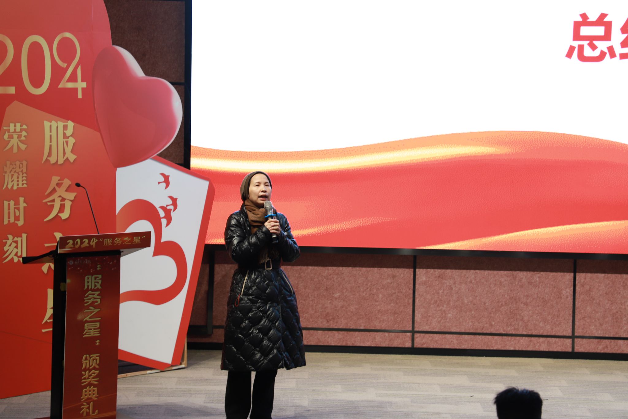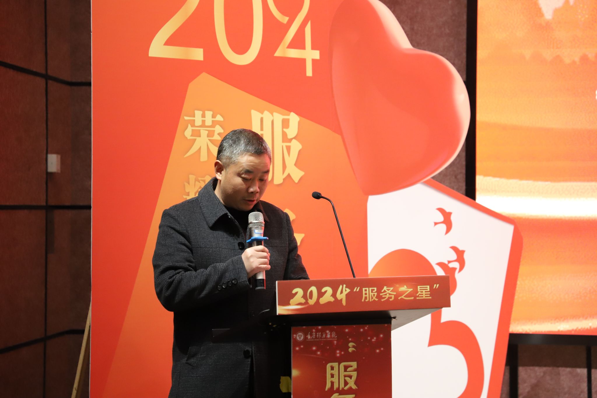 校长助理谢银平总结讲话,她首先对这一年在全体后勤职工的工作表达了肯定,大家齐心协力,各尽其职,圆满完成了这一年各项工作,为学校的发展交出了满意的答卷。“服务之星”的设立也代表着集团和学校对后勤工作的重视,强调了后勤工作对是助力学校高质量发展有着重要价值,后勤工作在幕后在看不见的地方成就着师生对美丽校园、平安校园、温暖宿舍等看得见且感受得到的幸福感和安全感。并对2025年后勤工作表达期待,希望大家以“服务之星”为榜样,坚持“微笑服务,以校为家,以校为荣”的工作理念,共同践行用心、用情、用一流的服务铸就双一流之外的首选大学的梦想与实践。