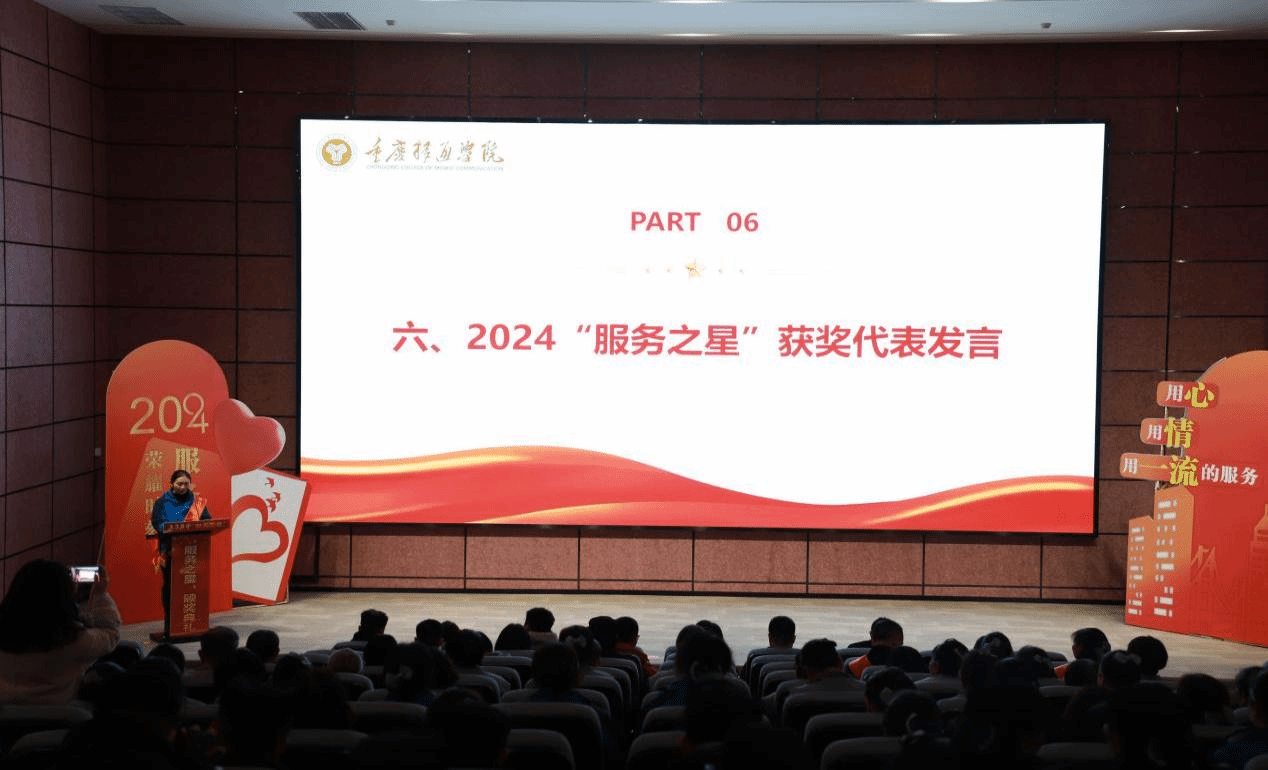 “我们的工作看似平凡,却充满了责任与意义,服务之星是对个人工作的认可,也是对团队工作的肯定。”服务之星代表周丽发言说到,他是一名宿舍管理员,除了把宿管工作管理好,她还把楼栋里每一个学生都当做自己的孩子,为学生生活她帮忙缝补过衣物,为学生学习成长她陪伴和鼓励,她表示未来我们将继续坚守自己的岗位,以更高的标准要求自己,不断学习新的管理知识和服务技能,进一步提升服务质量。