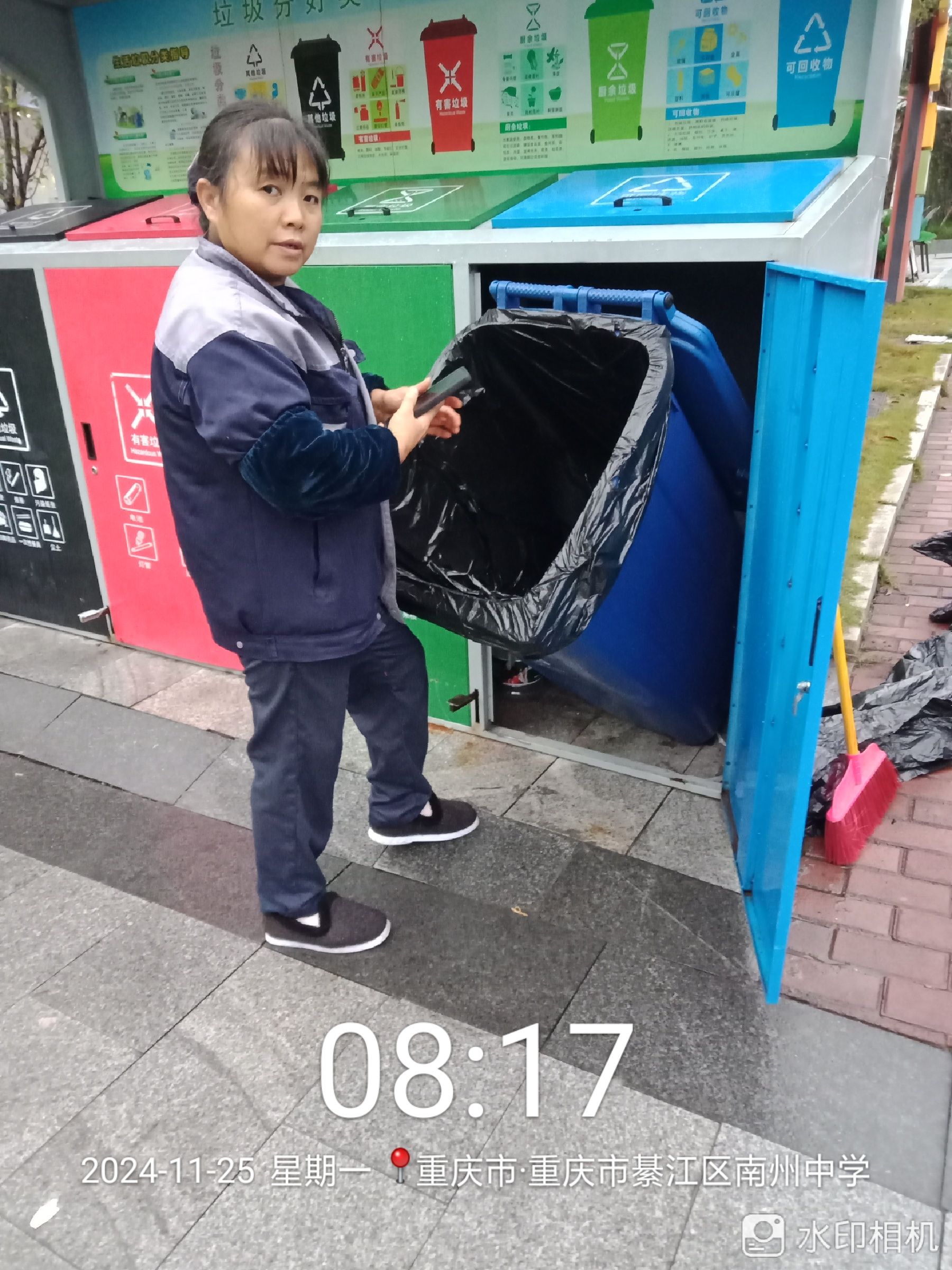 在迎检任务中,李大容同样展现出了出色的组织和协调能力。她每次接到通知后都会迅速制定详细计划,明确重点区域和责任人。即使遇到重大活动期间垃圾量剧增的情况,她也能带领团队全力应对,确保校园始终保持整洁。在她的带领下,团队成功完成了86次迎检任务,为学院的形象建设做出了重要贡献。