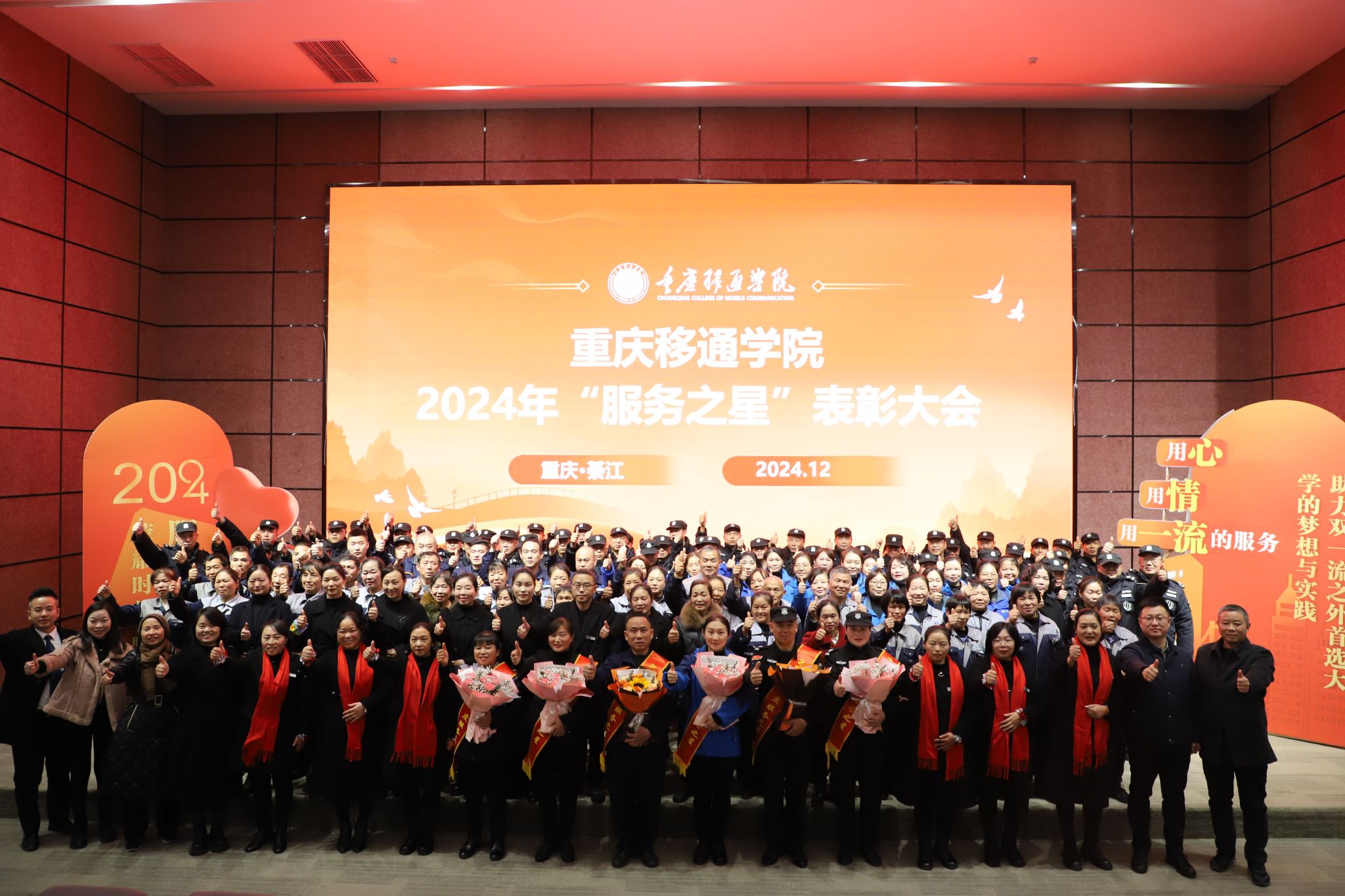为表彰激励一批具有示范表率的后勤服务工作者,进一步提升后勤服务水平,发挥后勤服务育人功能,为学校高质量发展保驾护航。12月24日,重庆移通学院綦江校区在贤者楼423多功能报告厅隆重举办2024年度服务之星表彰大会。校长助理梁少锋、谢银平、基建后勤处、保卫处、学生处、教务处、竞技体育中心和天地秀物业管理有限公司总经理李欣及綦江项目物业员工参加了此次大会。