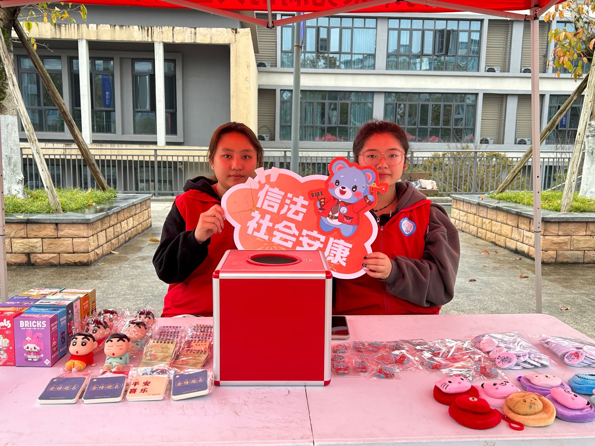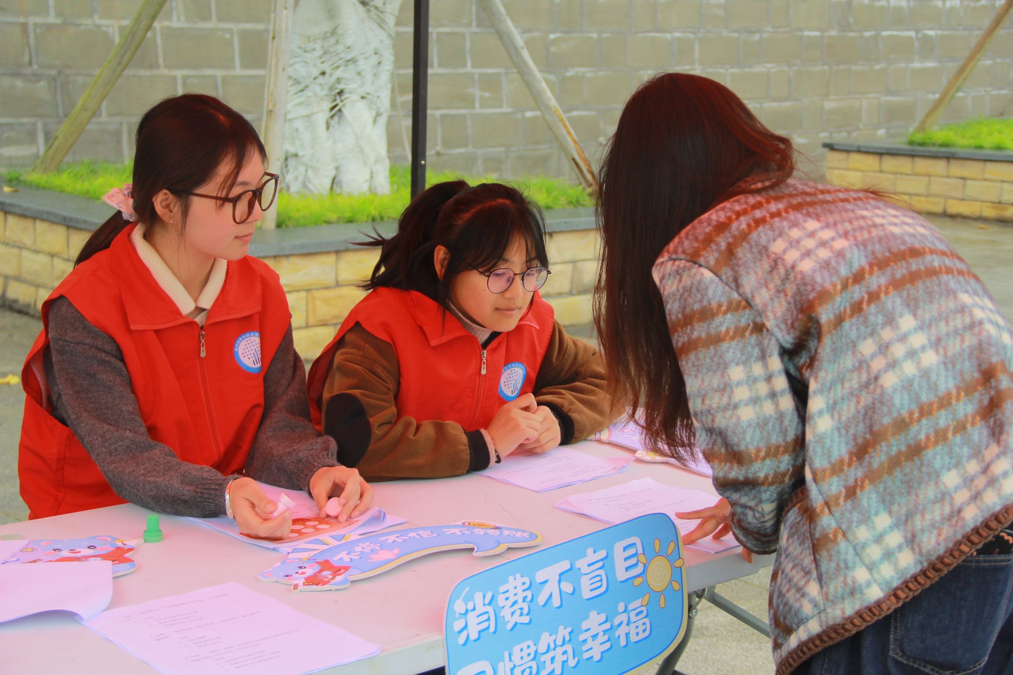 活动现场,《中华人民共和国民法典》《中华人民共和国消费者权益保护法》等法律条文化作跃动的音符。手持集章卡的同学们穿梭于六大展台,在“法律情景模拟台”化身谈判专家破解网购纠纷,于“火眼金睛辨真假”展台成为商标侦探揪出山寨破绽。活动创新采用“认知-实践-防御”全链条设计,将20余种生活场景融入盲盒抽卡、限时压力测试等环节,让抽象法理转化为可操作的维权技能。