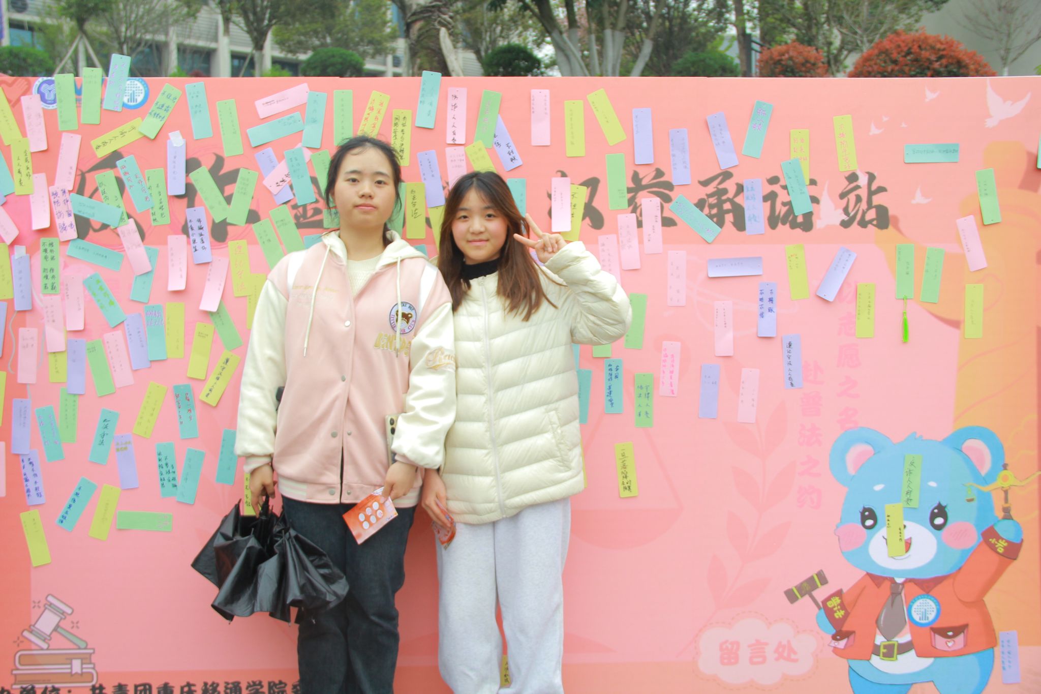 手持集章卡的同学们穿梭于广场,时而驻足凝视,时而热烈讨论,仿佛置身法治主题的奇妙乐园。在“法律情景模拟台”,此起彼伏的惊呼声引人侧目——这里正上演着现实版《律政先锋》。当指尖探入盲盒箱的刹那,每个人的表情都像拆盲盒般充满期待。有人抽到网购退货纠纷案例,立刻化身谈判专家据理力争;有人面对“客服退款诈骗”情景,快速翻找记忆中的法条防御攻势。最刺激的限时压力测试环节,倒计时滴答声催动着思维火花,不少同学额头沁汗却目光灼灼,将证据链条在脑中飞速重组。