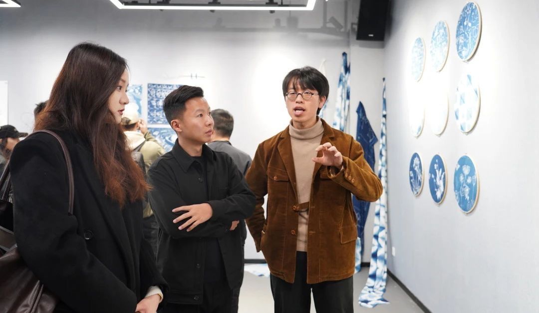 当日下午16:00,展览在瀛洲科幻学院教师王琎的主持下,伴随着瀛溪书院主任卢柯毓、通识教学部洪欣琳老师、瀛洲科幻学院袁理老师和刘佳莹老师的致辞拉开帷幕,他们对工坊成果及“科幻与想象力”课程实践表示了肯定。开幕后,同学们踏入展厅,仔细观察、深刻体验展览呈现的艺术魅力和想象力表达,感受蜡染艺术在不同形式下的独特艺术表达。2023级淬炼商学院的郑桢崑同学在观展后深受蜡染艺术的魅力和同学们天马行空的想象力感染,表示渴望参与蜡染艺术创作。