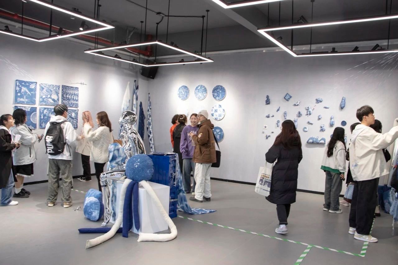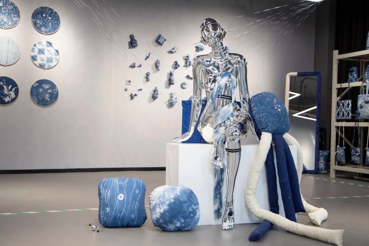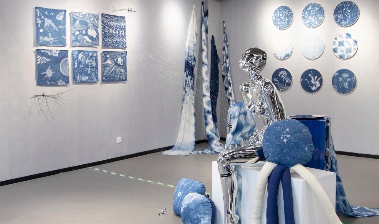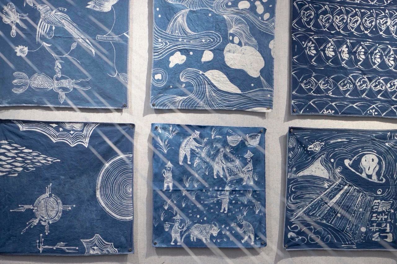 本次“山海异想”科幻蜡染艺术展由王琎、袁理、刘佳莹三位老师策划和布置,展览分为文脉传承、科幻创作、艺术衍生三个环节。