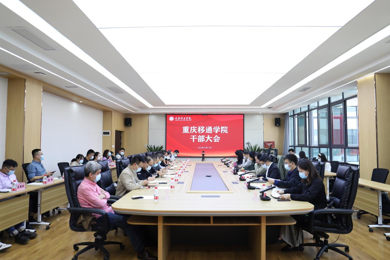 10月17日下午,重庆移通学院领导干部任免大会分别在綦江校区第一会议室、合川校区行政楼601会议室线下线上同步召开。重庆移通学院董事长王征,校长张德民教授,党委书记、政府督导专员何先刚及双校区全体校领导、科级以上管理干部参加会议,会议由集团人力资源总监彭光明主持。