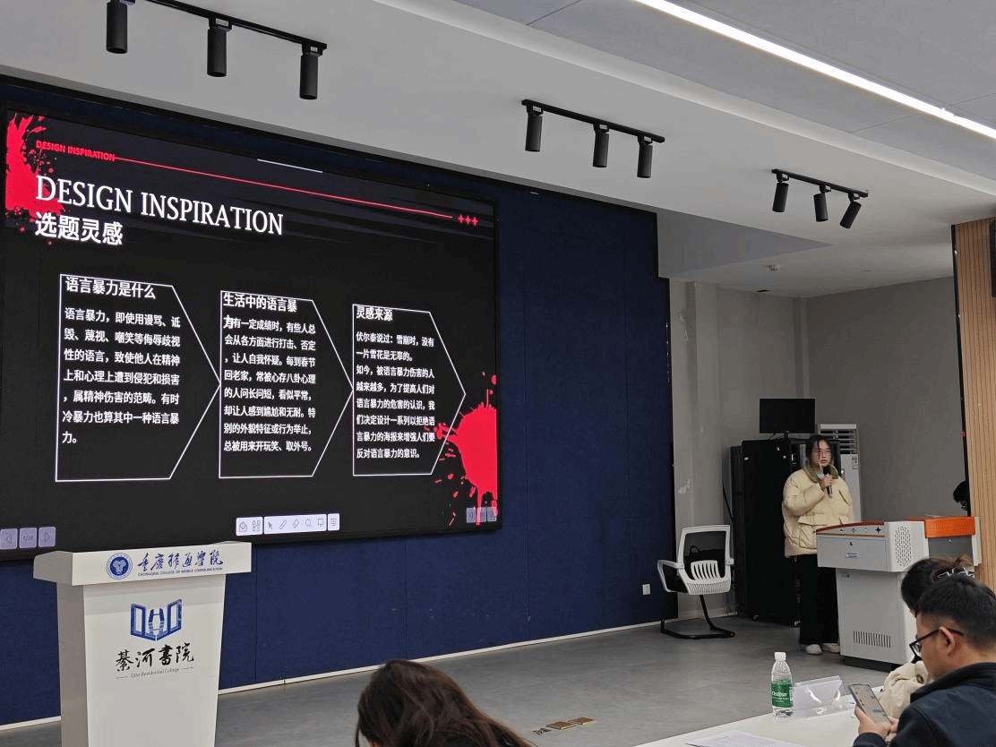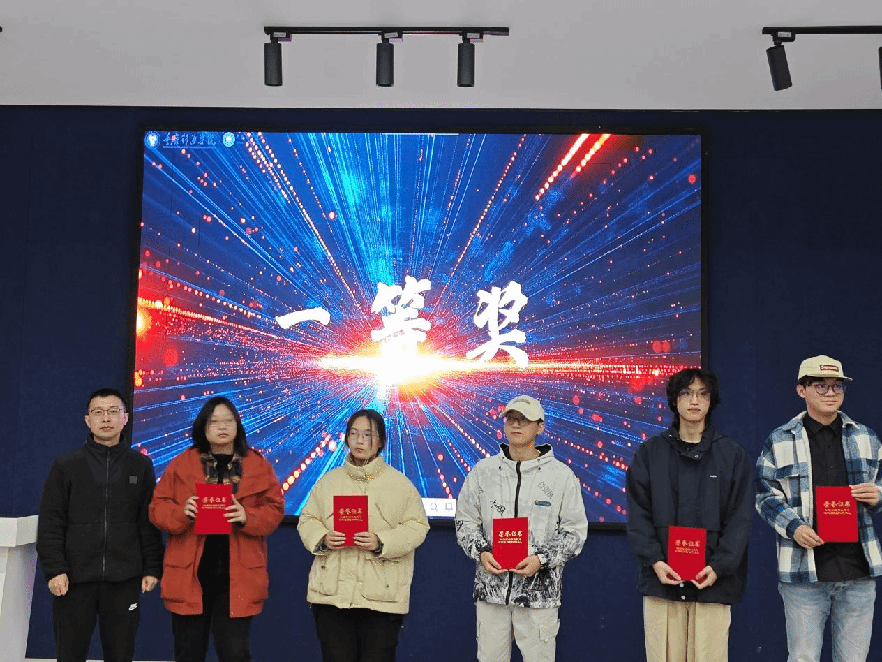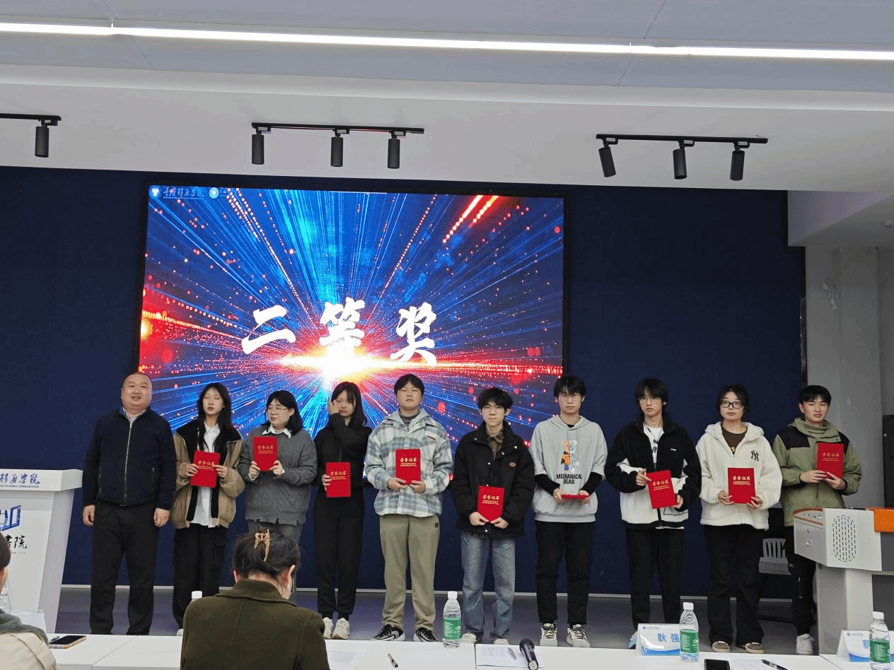 根据现场评分的高低,最终选出了5名一等奖和11名二等奖,其中刘诗媛团队的《拒绝语言暴力》海报、杨皓越团队的《小小骑士》等作品给人留下了深刻印象,荣获本次竞赛一等奖。在颁奖环节,随着激昂的音乐声响起,获奖学生按奖项等级逐一登台,接受属于他们的荣誉,现场传来阵阵热烈的掌声与欢呼声。这不仅是对他们辛勤付出的肯定,也是对他们的创新精神最真挚的赞誉。