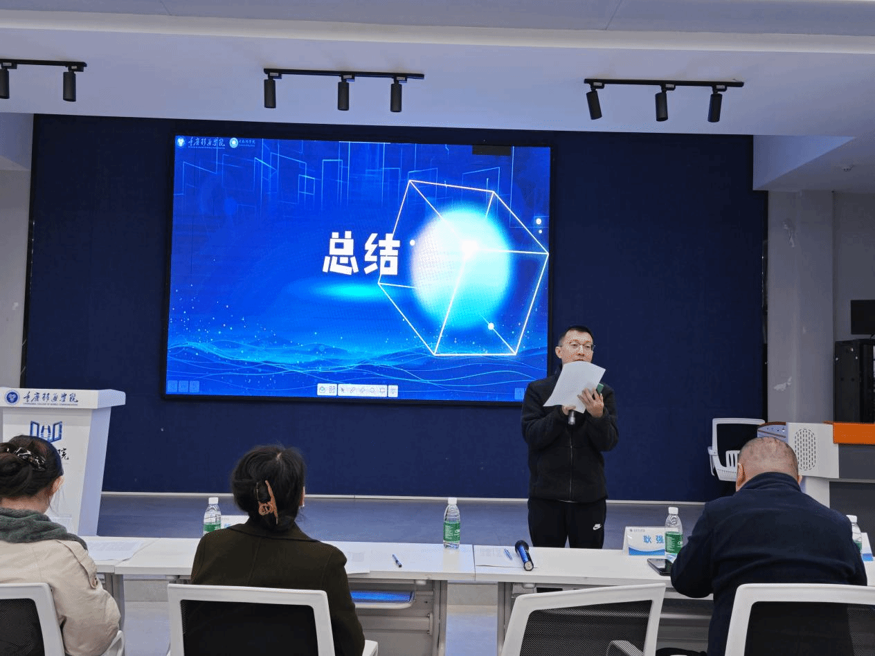 颁奖结束后,大数据学院数字媒体技术教研室主任蔡宇上台对本次比赛进行了总结。他向获奖学生表示了祝贺,鼓励学生以本次比赛为契机,继续在各领域发挥出自己的特长,为未来学习工作奠定坚实的基础。