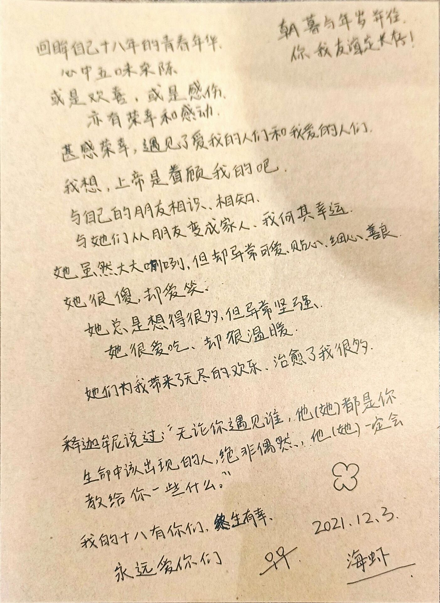 18岁,再一次阔别,友谊长存;