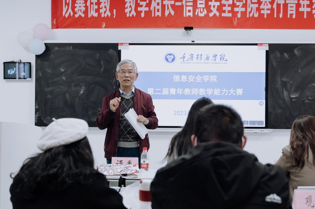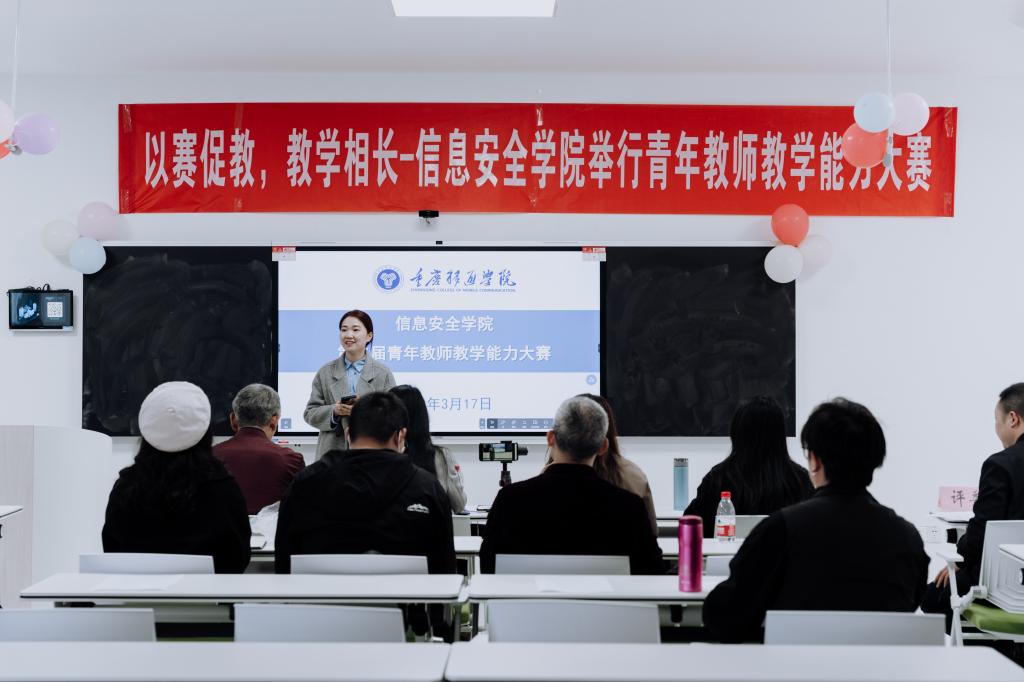为认真贯彻落实教务处“关于开展2023年青年教师教学竞赛活动的通知”,进一步提升青年教师的教学能力和教学水平,搭建青年教师相互学习和交流的平台,全面提升教学质量,信息安全学院于3月18日下午14:00,在勤者楼202智慧教室举办了以“以赛促教,教学相长”为主题的青年教师教学能力大赛。本次大赛由王宁院长、教学督导与质量评价中心的校督导韩国柱教授和葛君伟教授,及学院各教研室主任、教授担任评委,全体专任教师列席观摩了本次大赛。大赛由教学秘书王陈主持。