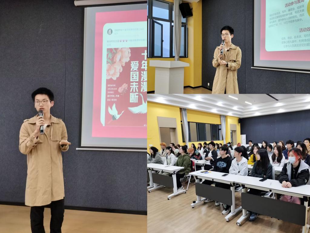 至广大而精细微。文华学长分享到,在活动开展中,要结合班级同学个人特色开展活动,他以文艺类方向为例,提到上届学姐学长们开展了剧本杀、诗词书法大会等创意活动,充分调动支部同学积极性;同时她提到要注意活动开展形式的多样性,积极联合其他班级、学院、社团、学校,扩大完满活动的影响力。文华学长还向团干部们分享了井盖涂鸦与T恤DIY的案例,建议各班团围绕活动主线延伸枝干,使完满活动更加完整,主题更加深刻。
