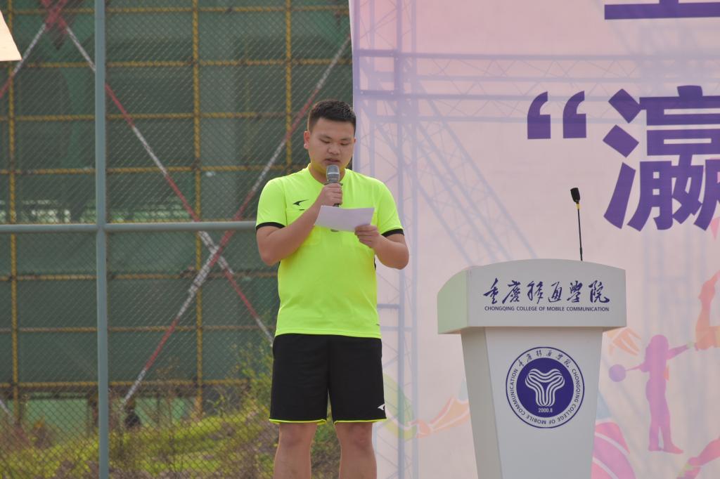 仪式第二项,竞技体育中心江华主任致辞,体育承载着国家强盛、民族振兴的梦想。习近平总书记高度重视体育事业,始终站在战略全局高度谋划部署体育事业发展,强调加快建设体育强国。重庆移通学院通过举办“瀛山杯”俱乐部系列联赛不断挖掘学生在体能、技能、智能、人格等方面的潜力,突出健康第一理念,倡导全民互动参与,持续营造“竞技、全民、阳光”的校园体育文化氛围,培养学生积极健康、活力阳光、竞争合作、坚毅果敢的领袖气质,力争办成非体育院校最体育的大学!