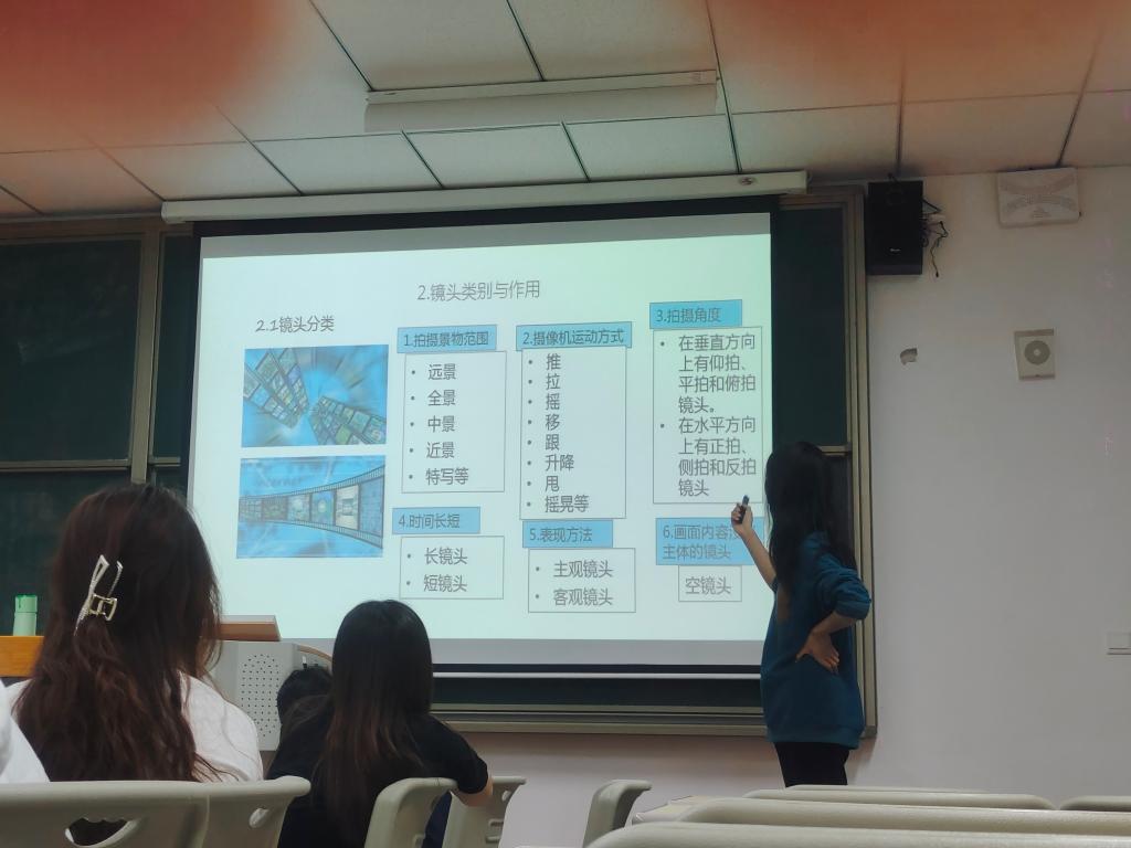 视频播放结束后,段老师让我们仔细回想一下电影开头的那一幕,影片是以什么样子呈现在我们面前的?多名同学抢答,有的说是远景,有的说是全景。没错,同学们在思考中逐渐踏入到了本课的主题,开始从专业的角度认真分析影片的镜头类别了,段老师欣然笑了笑:“同学们都有自己的想法,但却不够准确。每个优秀的作品里面都有他独特于其他作品的某些点,比方说张艺谋的作品。镜头的选取角度和类别对于电影内容的表达是非常重要的,大家要特别注意这一点。”