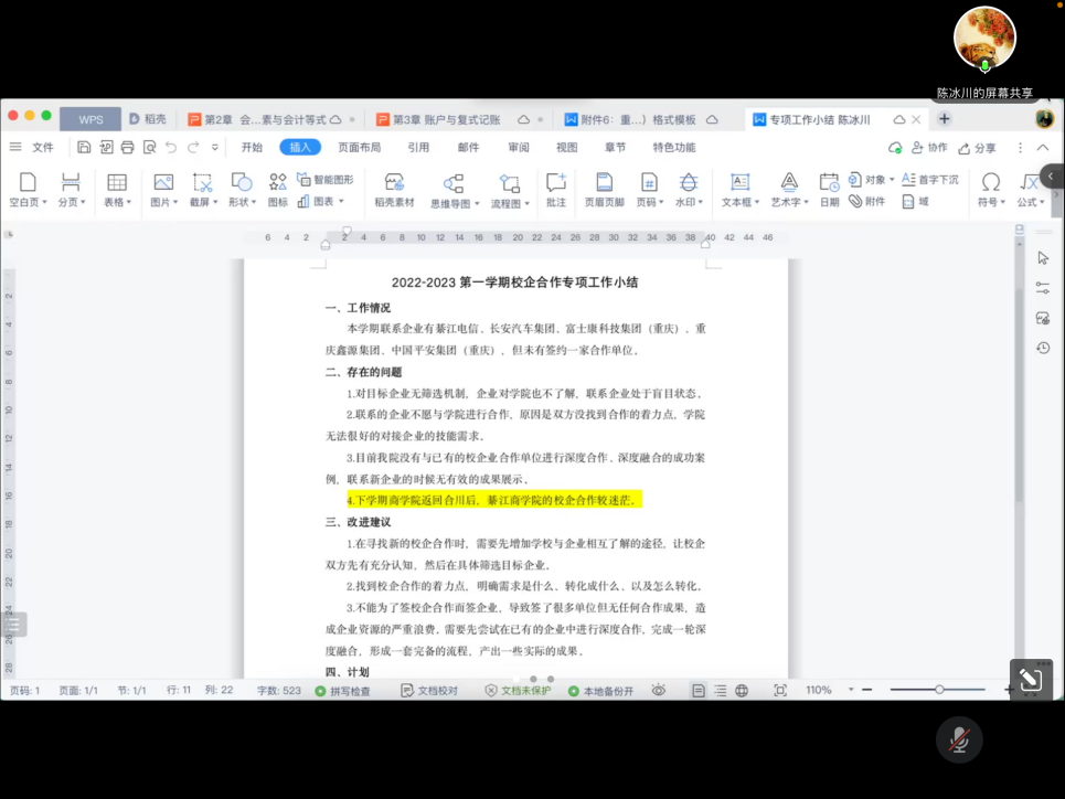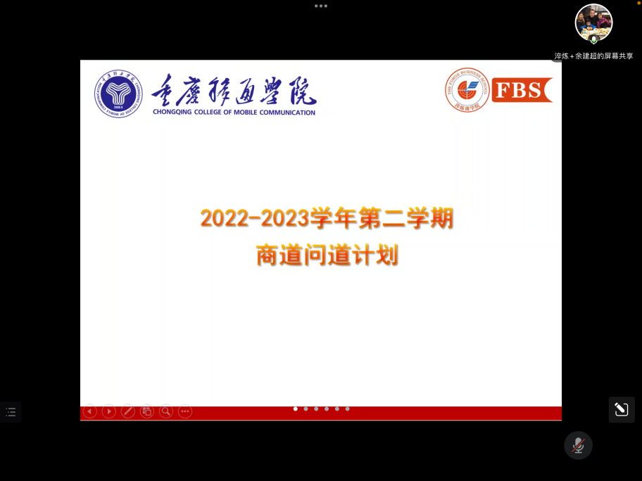 为总结2022-2023学年第一学期商科专项融合工作经验、发现各专项融合工作问题,促进本学期商科融合工作有序进展,3月10日下午14:30,綦江校区淬炼·国际商学院通过腾讯会议的方式开展了专项融合工作小结汇报及计划的商科融合交流会,各个专项工作负责人集中汇报了各专项的上学期成果及本学期计划。本次会议由副院长范保珠主持,全体教师参与。