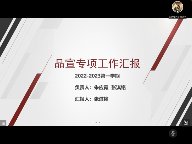 品宣专项工作小组的张淇铭老师总结了上学期品宣工作经验与心得。他总结到,上学期完成了系列品宣新闻稿、特色栏目搭建,也试水了部分课程与新商科品。范院长建议品宣小组扩大品宣物料适用范围,持续打造特色栏目,另外本学期要强化品宣符号系统、打造新商科特色教育的品宣特色栏目、品宣工作流程体系化运营、加强与新商科各专项的联动、提高资源利用效率。