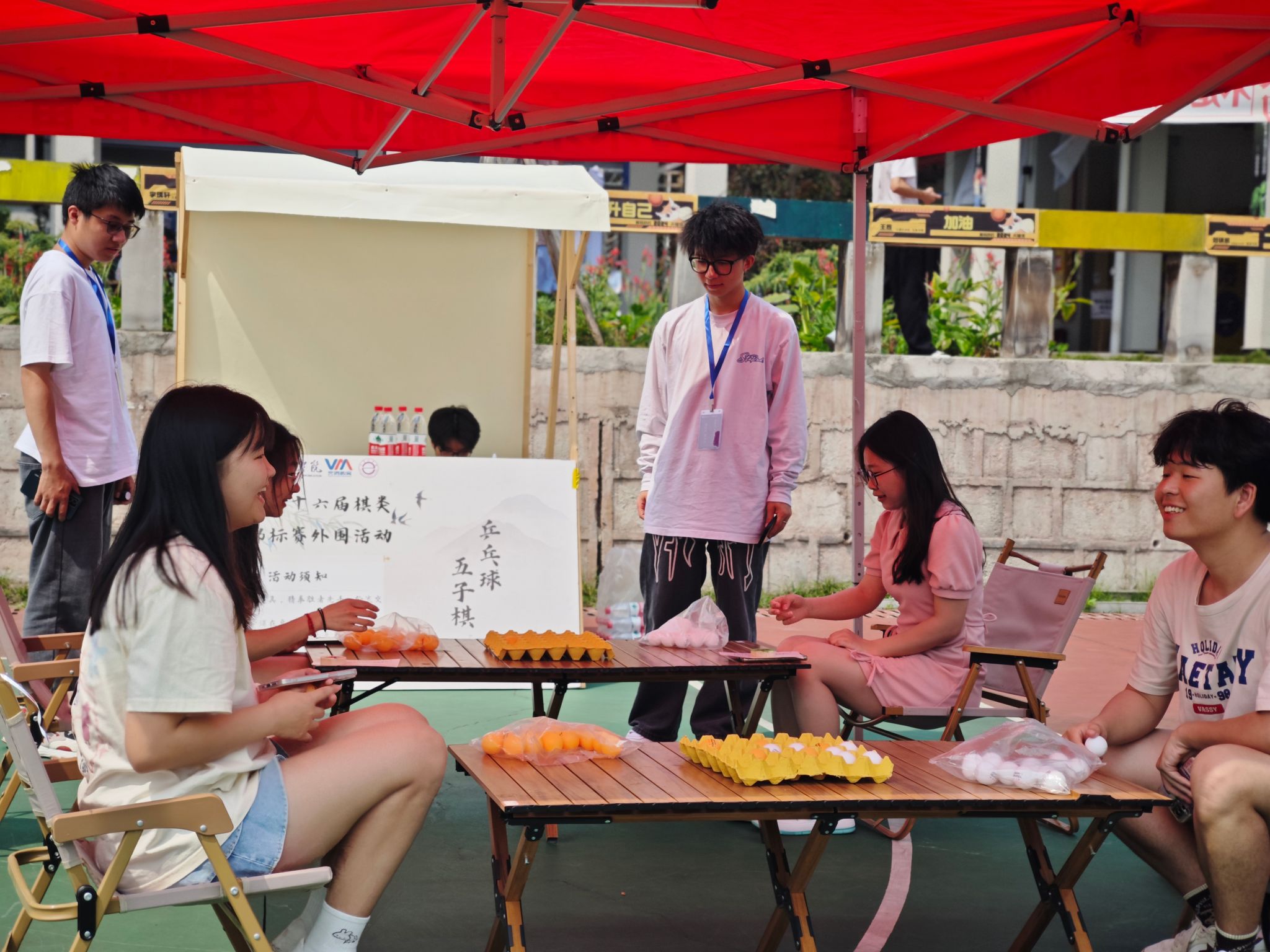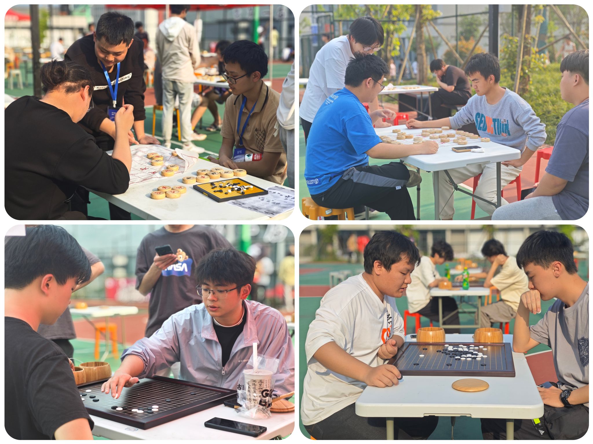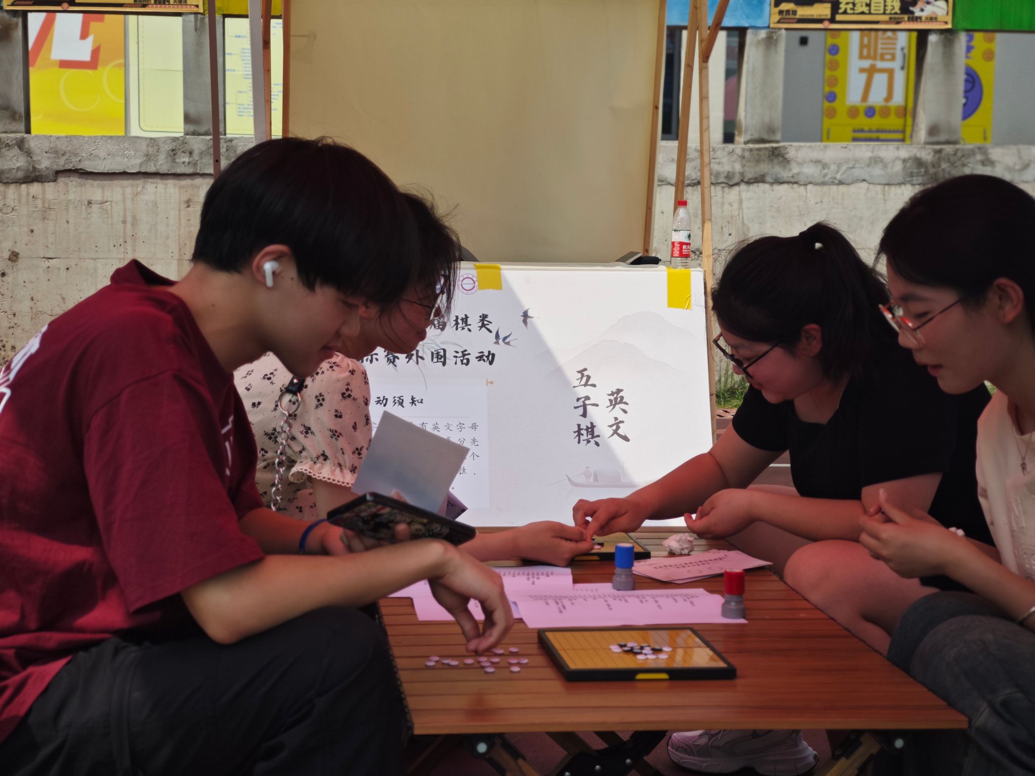 除了传统的棋类对弈,兼具趣味的创新型体验活动也正上演中。DIY象棋绘画环节让同学们发挥创意,用画笔绘制独具特色的象棋棋子;乒乓球五子棋结合了球技与策略思维,考验同学们的多重能力;接力跑井字棋与翻盖井字棋发扬了体育竞技精神,将速度与智慧完美结合;英文五子棋将英文元素与五子棋玩法做了巧妙融合,让参与者能够在棋局体验中兼具乐趣与学习;象棋残局挑战考验了规则掌握和战略思维,展现出参与者们高超的洞察力。棋类趣味活动充满挑战与激情,每一项都是对参与者多方面能力的考验,同学们在游戏中提升自我,乐在“棋”中。