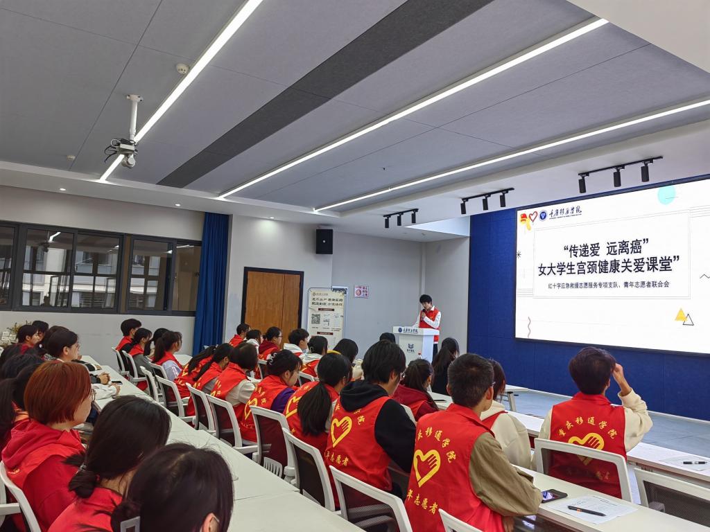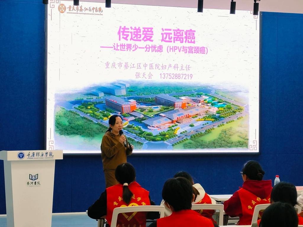 “关注女性安康,就是关注民族将来。”加强重视女性健康问题,就是关爱并维护女性安康和权利,而宫颈癌是仅次于乳腺癌的女性高发恶性肿瘤,近年来,发病率居高不下,并趋于年轻化。全世界每年有20万女性“惨遭毒手”,其中中国死亡人数高达10%!为加快我国宫颈癌消除进程,保护和增进广大妇女健康,国家卫健委大力推广妇科疾病预防知识走进校园,让大学生能以更好的姿态展现在大家面前,以更健康的心态去与家人和朋友交谈。为此,我校红十字应急救援志愿服务专项支队携手綦江中医院于2023年3月10日下午13:00在綦河书院二号楼观涛多功能报告厅,开展“传递爱 远离癌”女大学生宫颈健康关爱课堂。