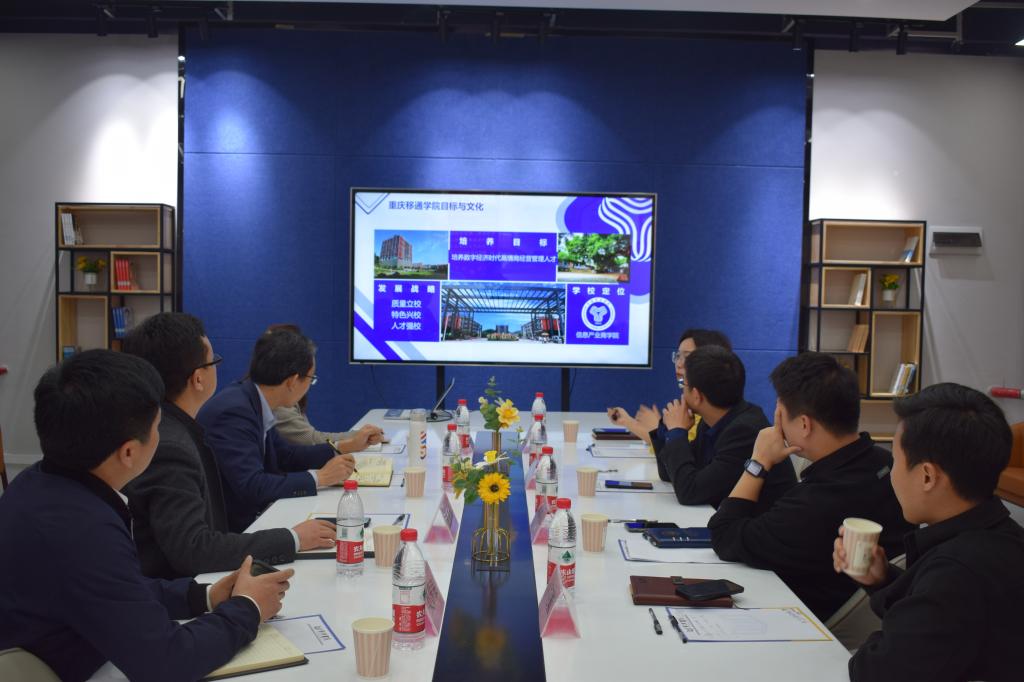 双方于綦河书院励行会客厅举行了亲切的交流座谈。会上,李文豹副校长简单介绍了学校的院系和专业设置情况,双校区建设基本情况,以及我校“信息产业商学院”的办学定位和“四位一体双院制”的特色育人模式,同时对我校科幻学院、电影评论中心等特色部门运作模式进行了讲解。
