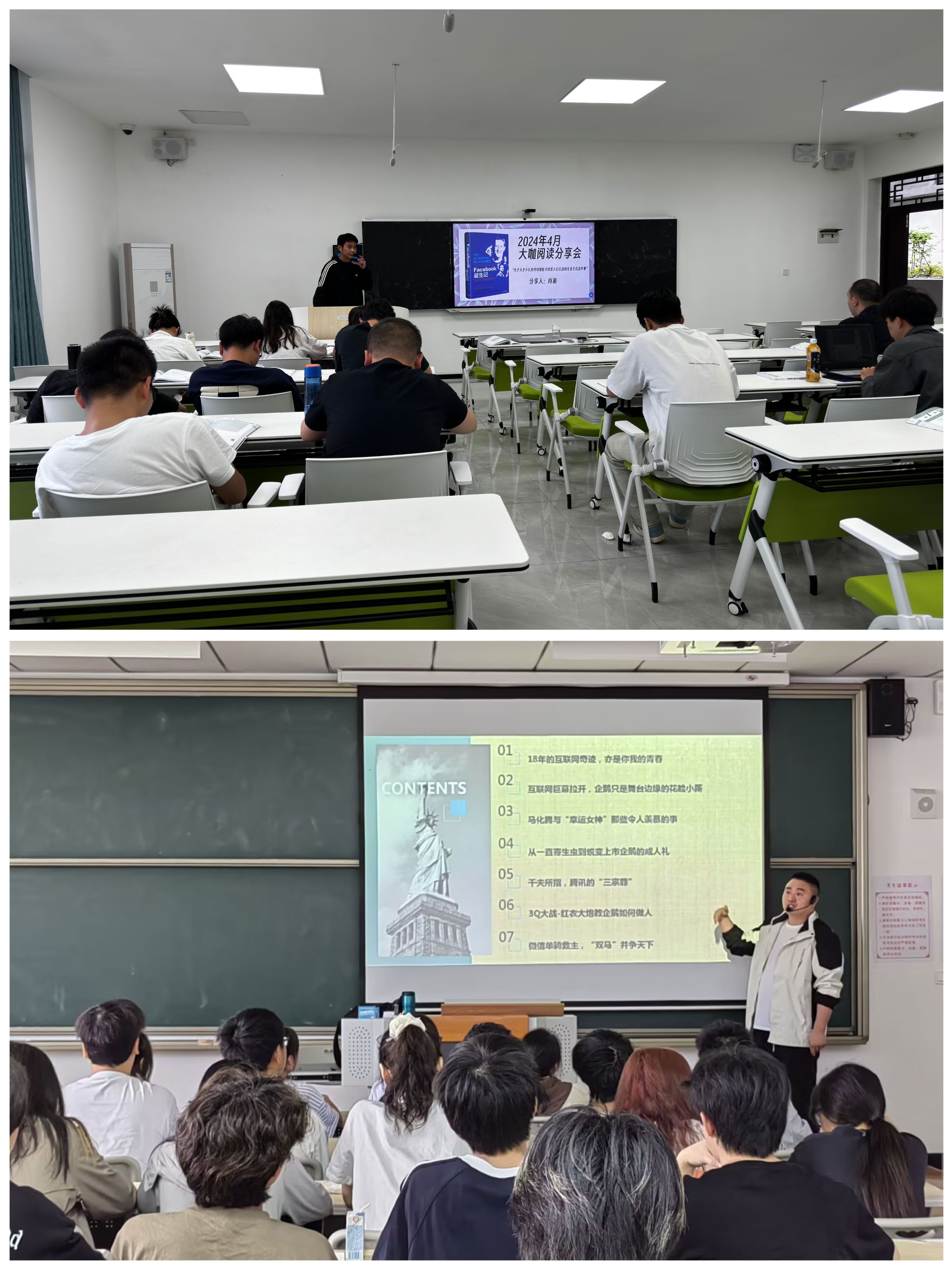 钓鱼城科幻学院(綦江校区)4月25日,钓鱼城科幻学院举办了本学期第三场信息产业大咖传记阅读分享会,此次分享的焦点聚焦在中国科技行业的巨匠之一——雷军身上,他的传记《顺势而为——雷军传》成为了学院师生热议的话题。大数据学院(綦江校区)为了深入学习信息产业大咖的经验,大数据学院的异科导师们开展了许多特色活动,共计举办了123场次,覆盖了1020人次。其中包括让“读书启迪创新思维”大咖阅读活动、“开启智慧、启迪人生”大咖阅读分享会等。在自由交流环节中,同学们纷纷畅所欲言,就书中的观点和自己的感悟进行了深入的探讨。淬炼·国际商学院(綦江校区)随着春天的到来,为了激发学生的阅读兴趣,提高同学们的阅读素养,同时也为师生们提供了一个共享阅读乐趣、交流阅读心得的平台。淬炼·国际商学院的异科导师们共计开展大咖阅读活动16次,覆盖学生232人。