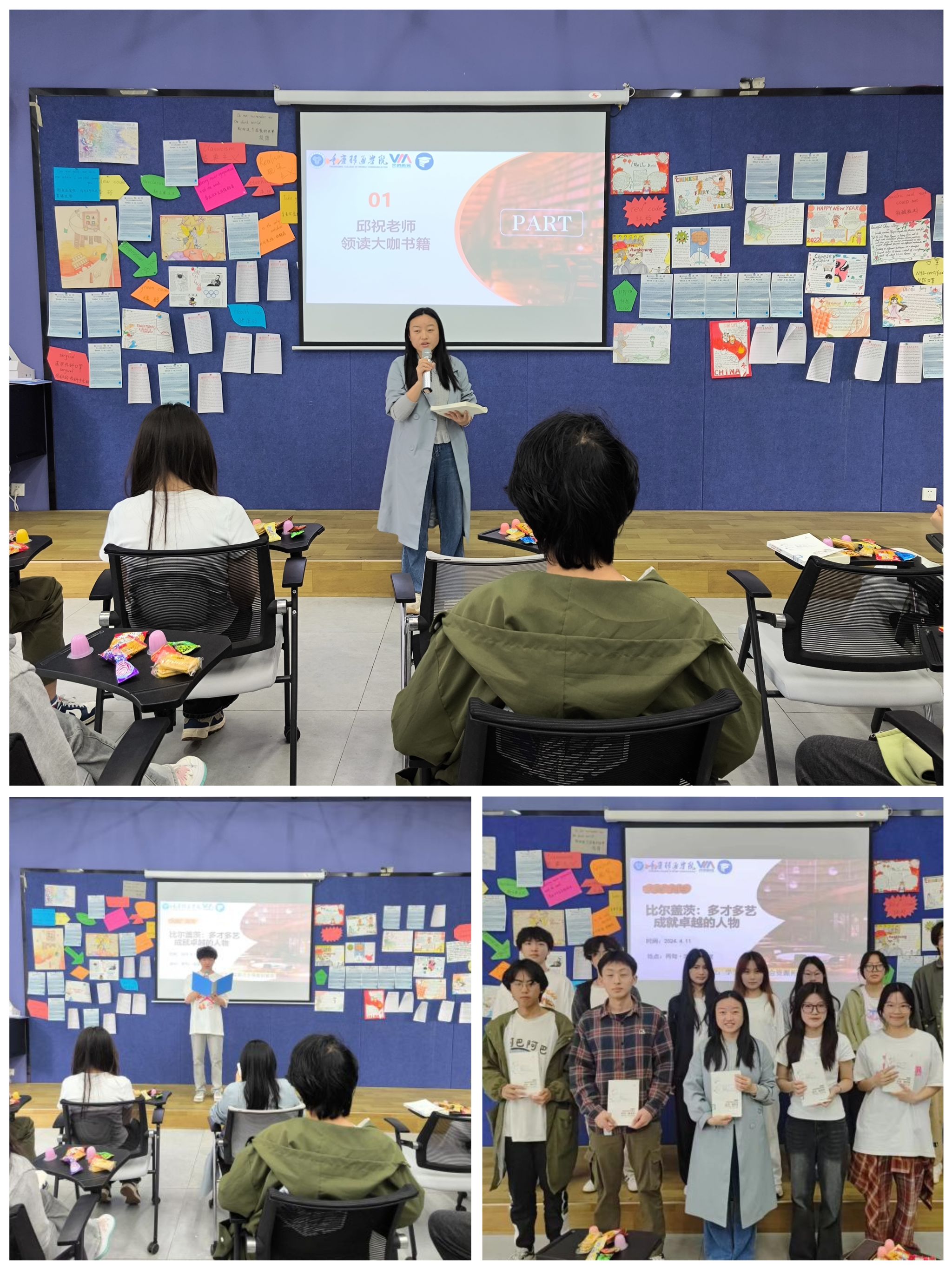 实训中心(合川校区)4月22号,实训中心各位老师一起阅读了《改变世界是一种信仰:乔布斯和他的苹果神话》这本书,读完大家内心被深深地触动。它不仅仅是对一个商业传奇的回顾,更是一部关于创新、激情、执着与信仰的史诗。乔布斯,这位引领科技潮流的巨人,用他的一生诠释了什么叫做改变世界。书院部(綦江校区)为进一步贯彻我校“信息产业大咖阅读计划”,营造浓厚的读书环境,提升校园商科教育文化氛围,增进同学们们对大咖的了解与认识,更好地塑造学生对“信息产业经营管理者”思维,书院部于4月11日在綦河书院两句·演讲培训室开展四月大咖阅读分享会活动,覆盖20余人。本次阅读分享会以书院部邱祝老师领读拉开帷幕,她用自己的方式带领同学们一同走进比尔·盖茨的世界,感受这位伟大人物的思想与智慧。