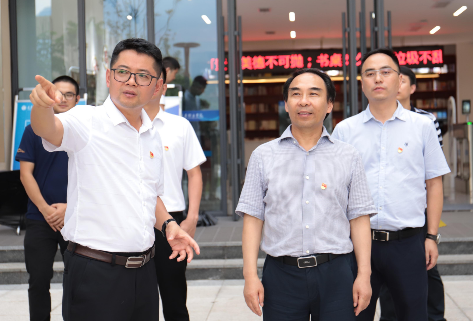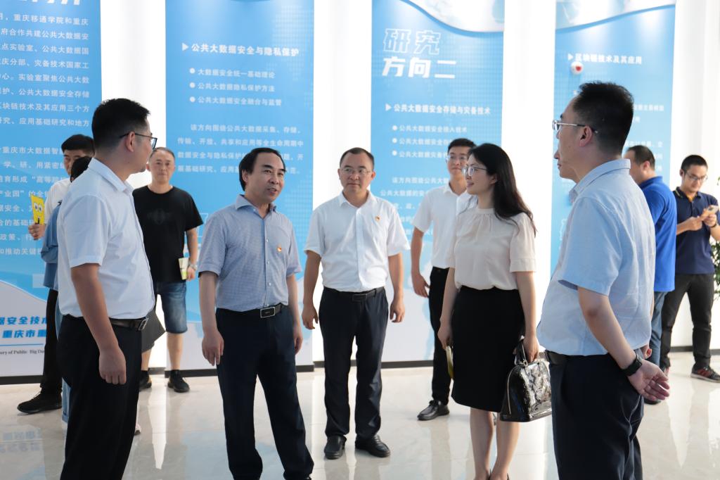 参观结束后,市教委邓睿一行来到我校綦江校区,綦江区区委教育工委书记、区教委主任蒲德莉,副主任左祥国陪同调研组实地考察了学校建设工作推进情况。先后对校区綦河书院、公共大数据安全技术重庆市重点实验室、图书馆走访调研。邓睿巡视详细了解了学校基本情况以及特色教育模式,并详细询问了学生在功能室的活动情况、实验室未来校地发展规划情况、校区建设情况。