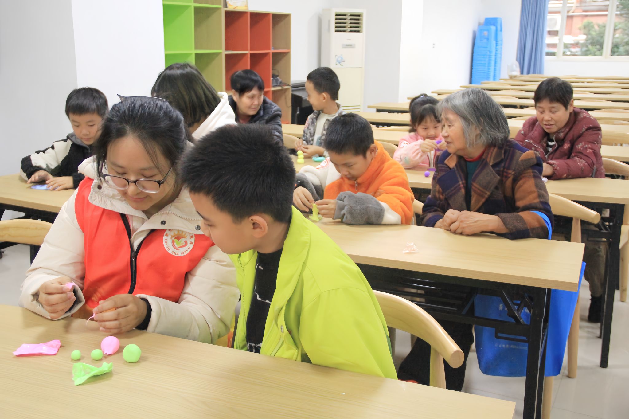 志愿者们向孩子们分发超轻黏土,并带领他们一起动手制作。在这个过程中,孩子们不仅得到了动手能力的锻炼,还充分展现了他们特有的想象思维和大胆创意。通过制作超轻黏土,孩子们在创作中释放了自己的心灵,享受了动手操作与想象创造的双重快乐。