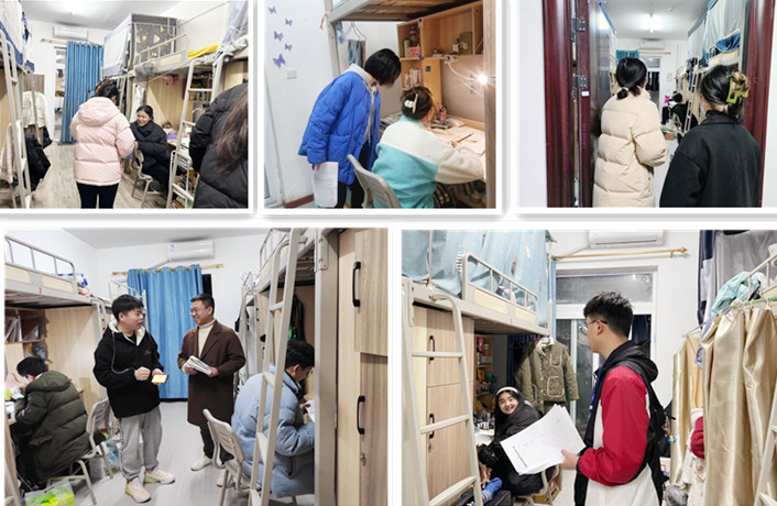 作为新冠病毒感染调整为“乙类乙管”后的首个开学季,为确保全员学生均符合健康入学条件,学校前置学生安全返校工作,部署开展返校前健康监测,确保健康开学、安全开学。宿舍区域提前恢复工作状态,建立健康驿站,配齐人员物资,宿舍值班员提前返工完成楼栋巡查,排查安全隐患整改。校内各处投放各类宣传教育海报,寝室大厅循环播放安全教育视频,营造“时时在提醒,处处讲安全”的校园氛围。各学院通过年级会、班会开展主题教育,学校职能部门、学院辅导员、宿舍值班员、安全巡查员深入学生寝室走访慰问,送上新春祝福,排查大功率电器使用、危险物品存放、寝室酗酒等问题,消除可能存在的安全隐患,提醒同学们注意防火、防盗、防网络诈骗等,提高同学们的安全意识,提升防骗识骗能力。